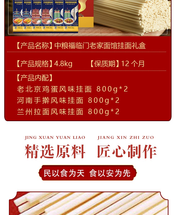商品名称:中粮 福临门 老家面馆挂面 礼盒