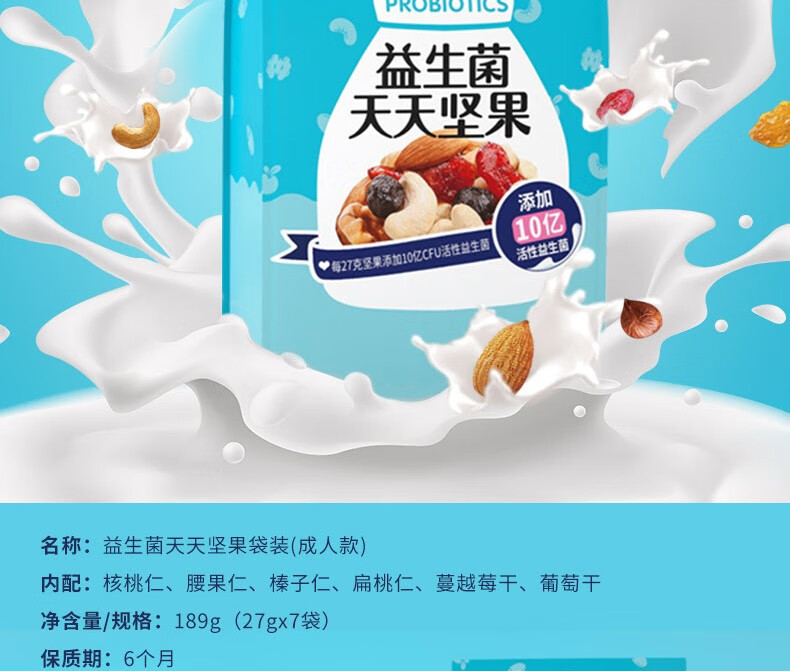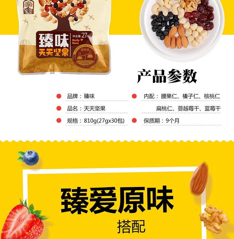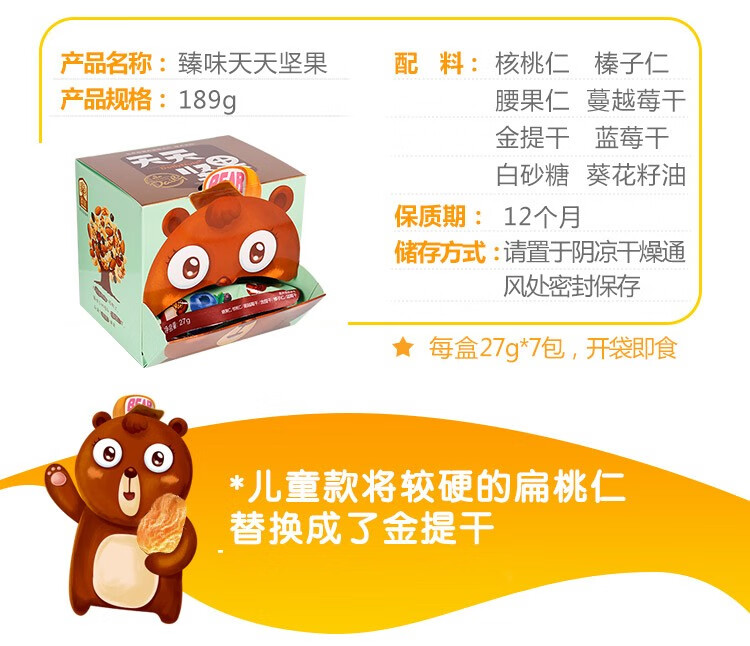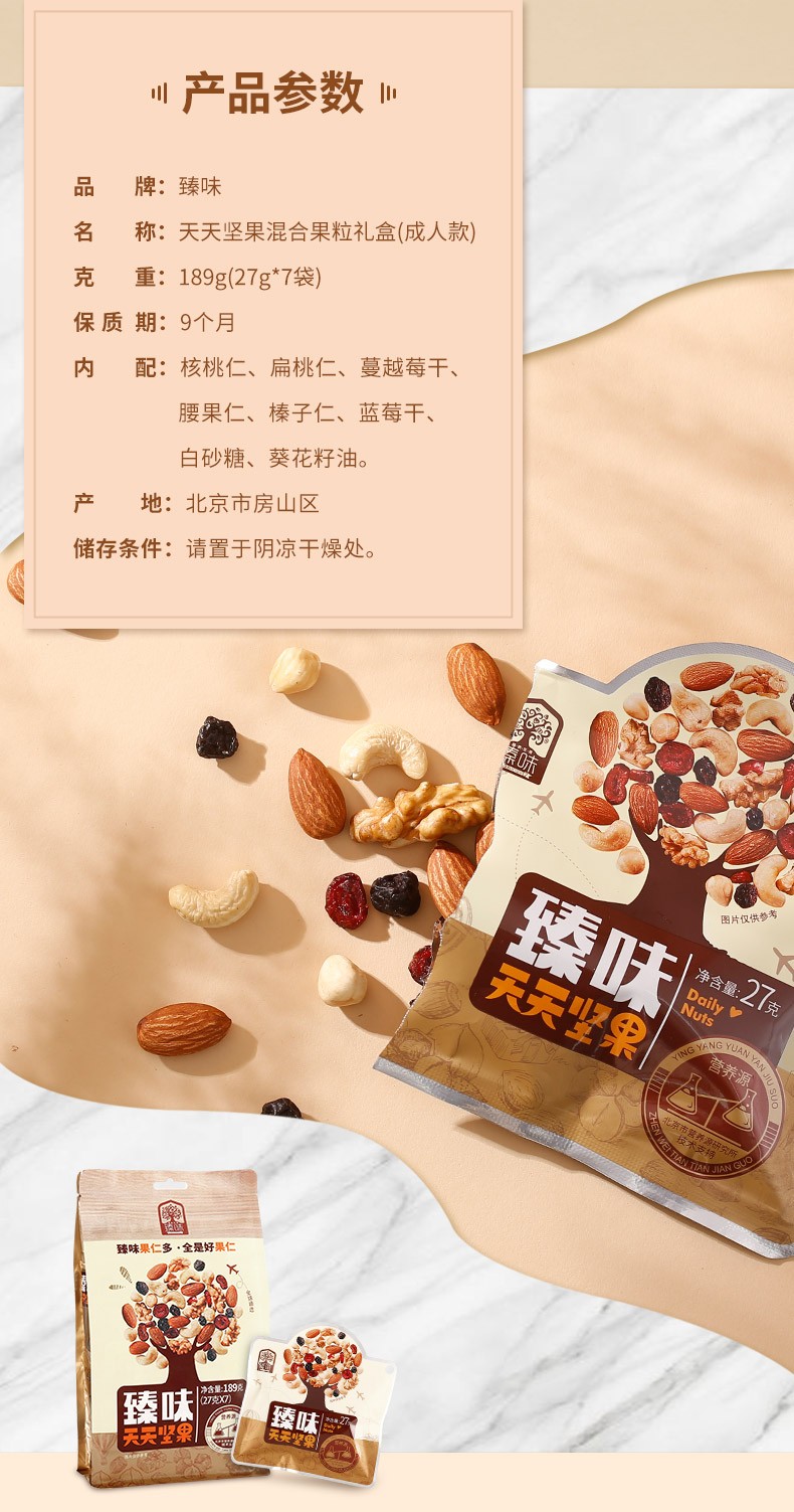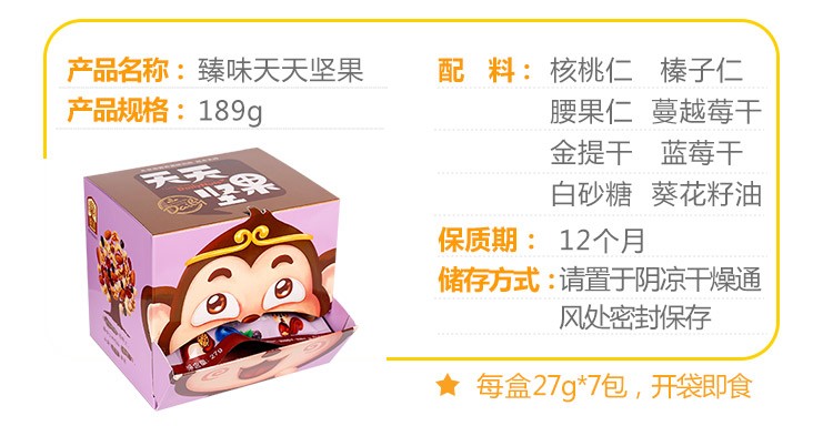 商品名称:臻味 189g 天天坚果猴赛雷 27g*7包