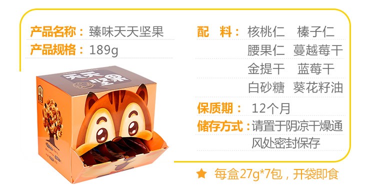 商品名称:臻味 189g 天天坚果鼠来宝 27g*7包
