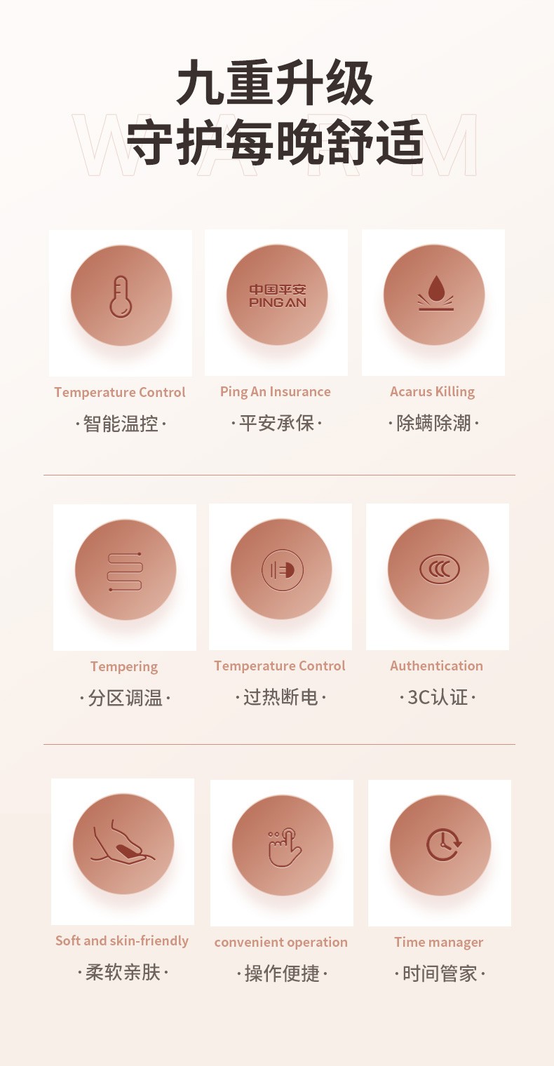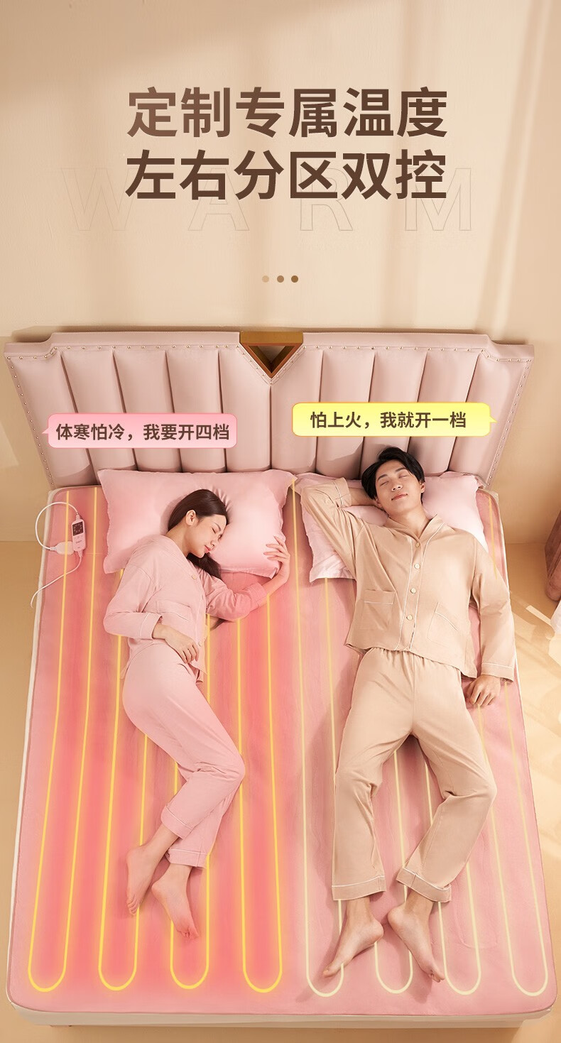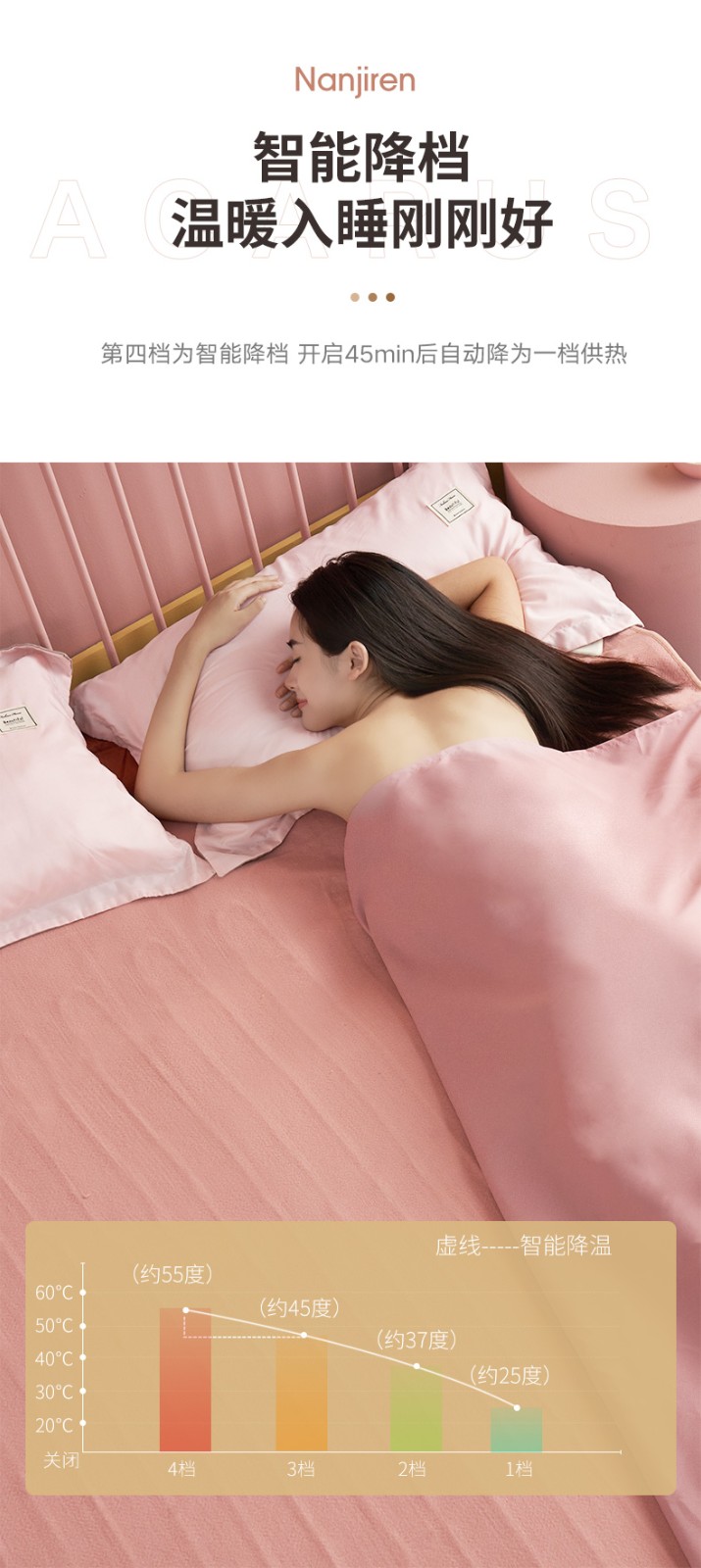 商品名称:南极人(Nanjiren)-880220-双人双控 除螨除潮 过热断电-电热毯-功率125W 商品尺寸180*150cm-单位:床