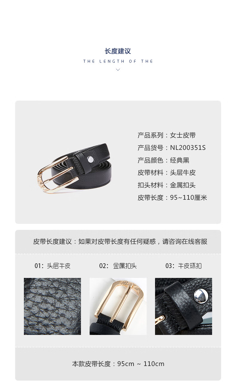 商品名称:Sheridan 喜来登皮带女士头层牛皮腰带针扣皮带中年青年商务腰带 NL200352S