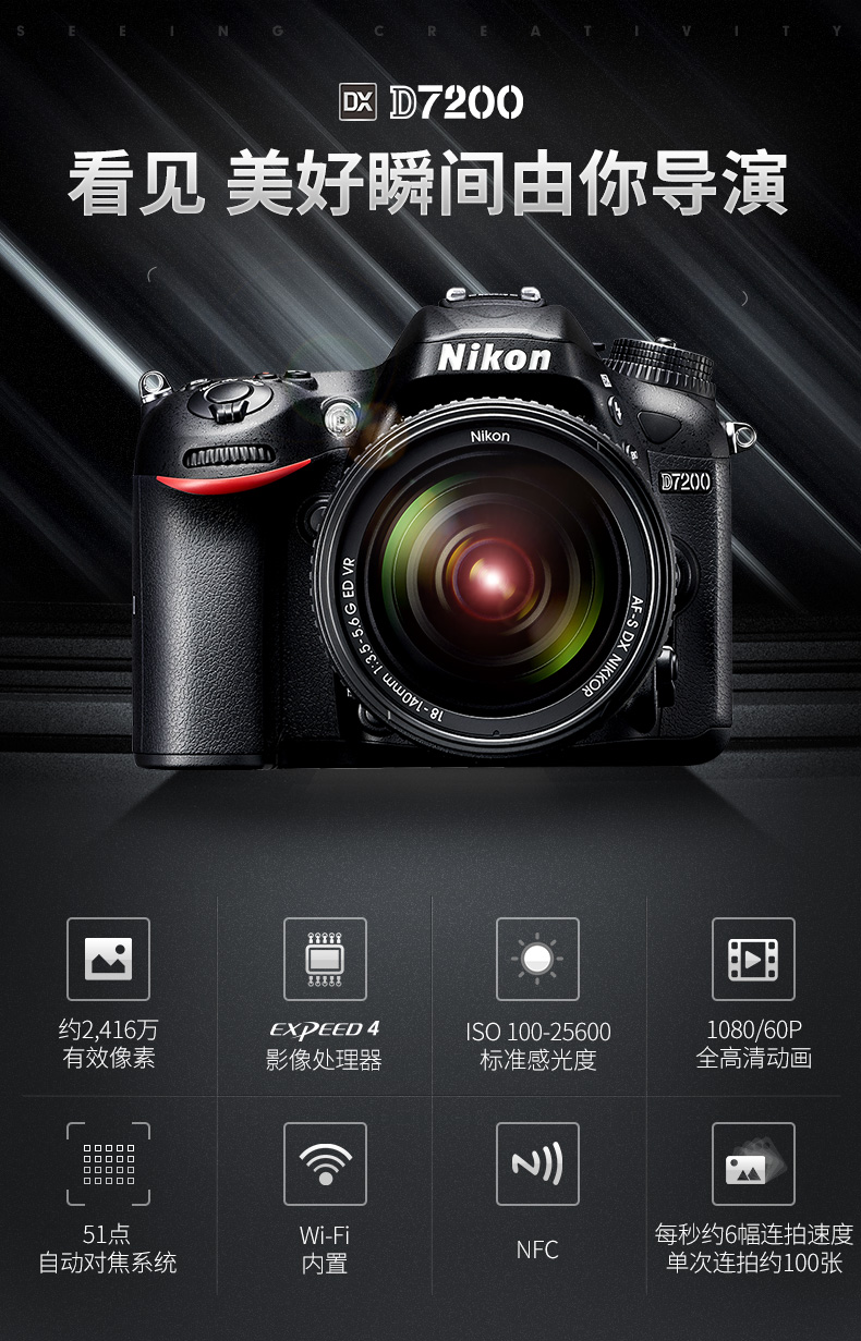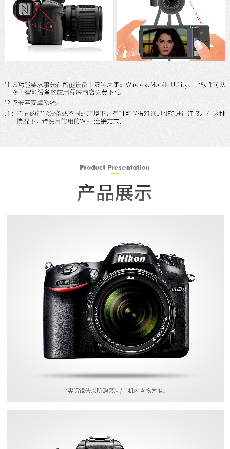 商品名称:尼康/Nikon18-140mm旅游录像高清数码单反相机 D7200