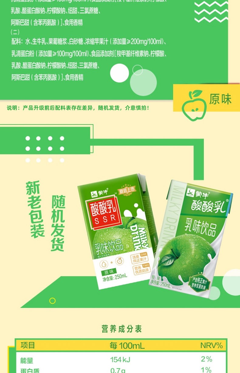 商品名称:蒙牛 酸酸乳 原味 250mL*24盒/箱
