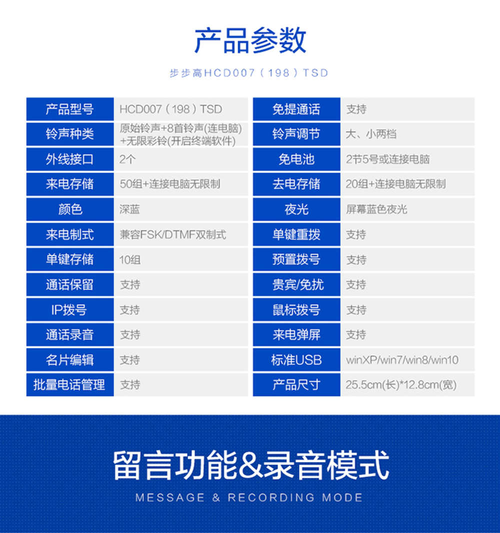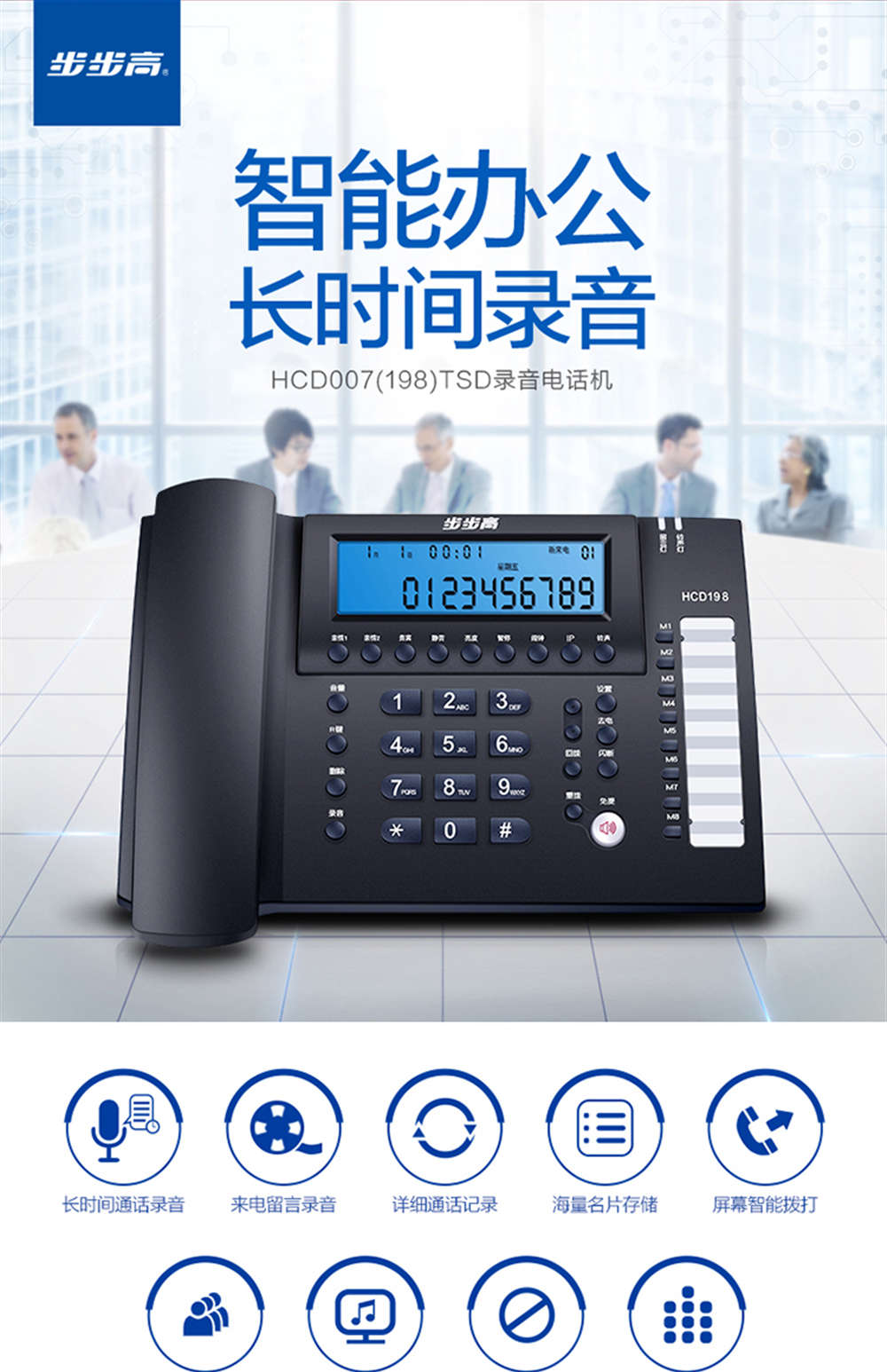 商品名称:步步高 自动电脑录音智能电话机座机 HCD007(198)TSD