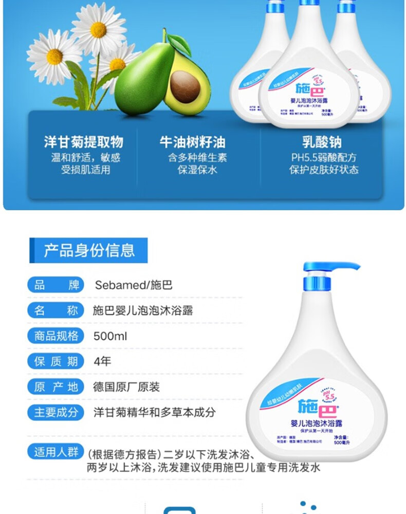 商品名称:施巴 婴儿泡泡沐浴露 500ml
