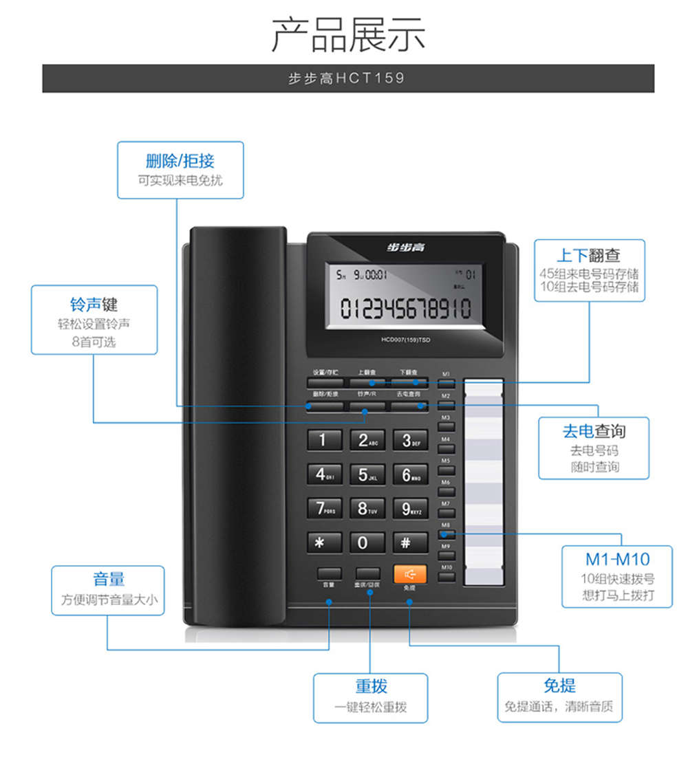 商品名称:步步高 有绳固定电话机座机 HCD007(159)TSD