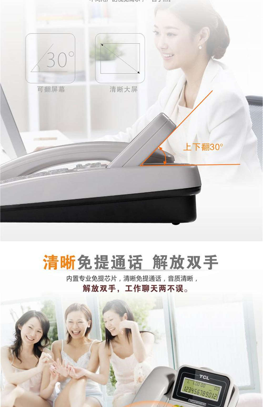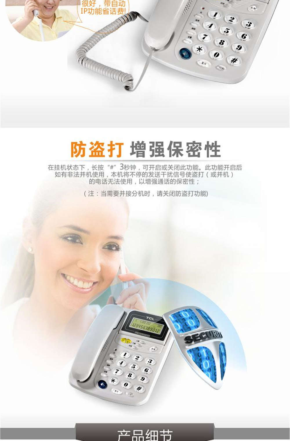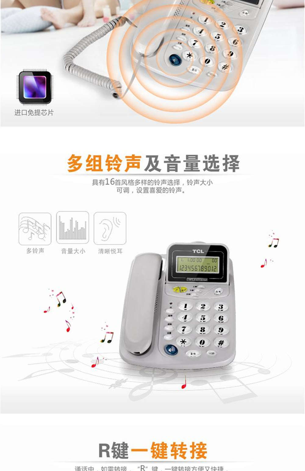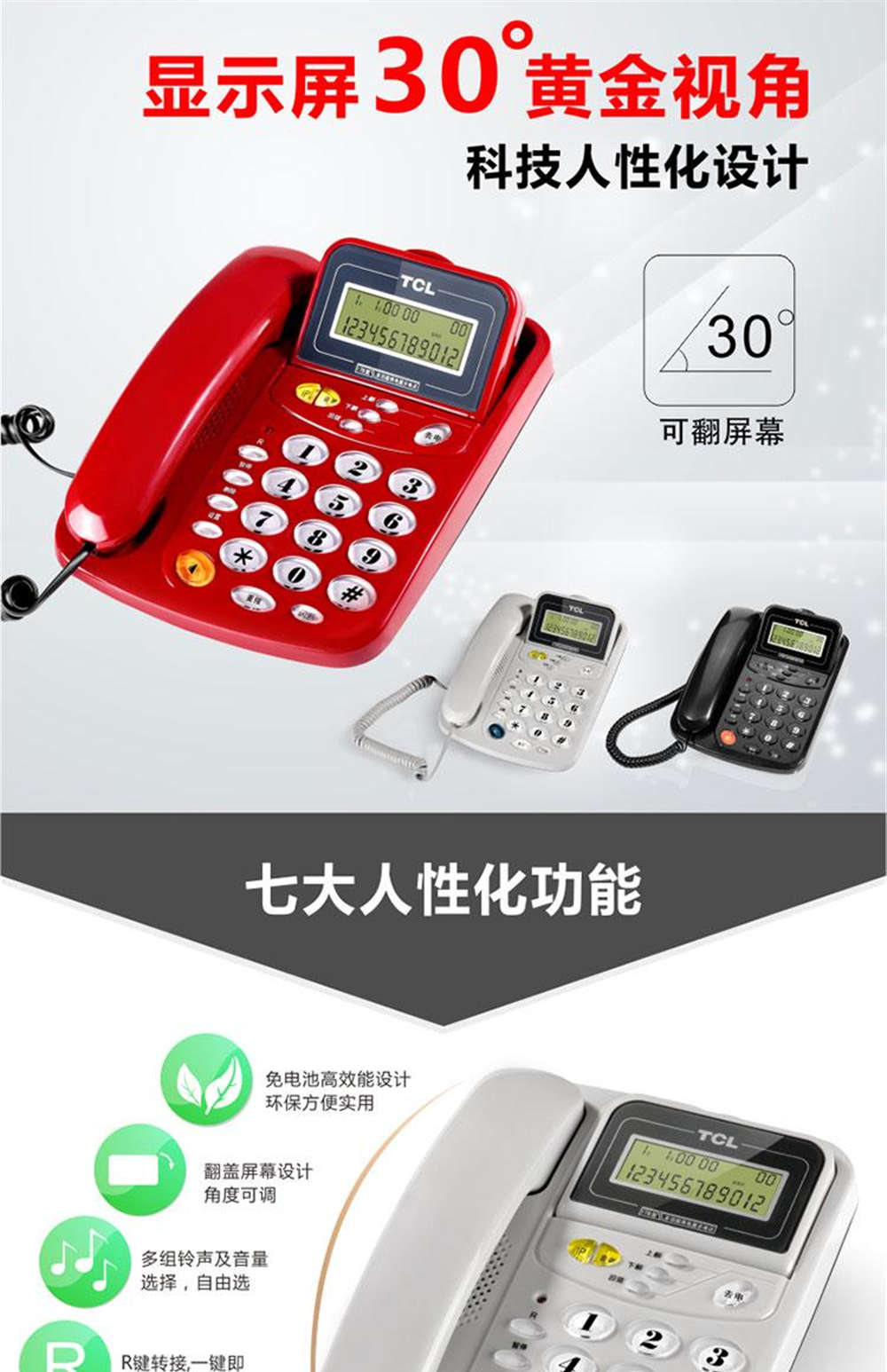 商品名称:TCL 电话机来电显示双接口免提通话 HCD868(201)TSD