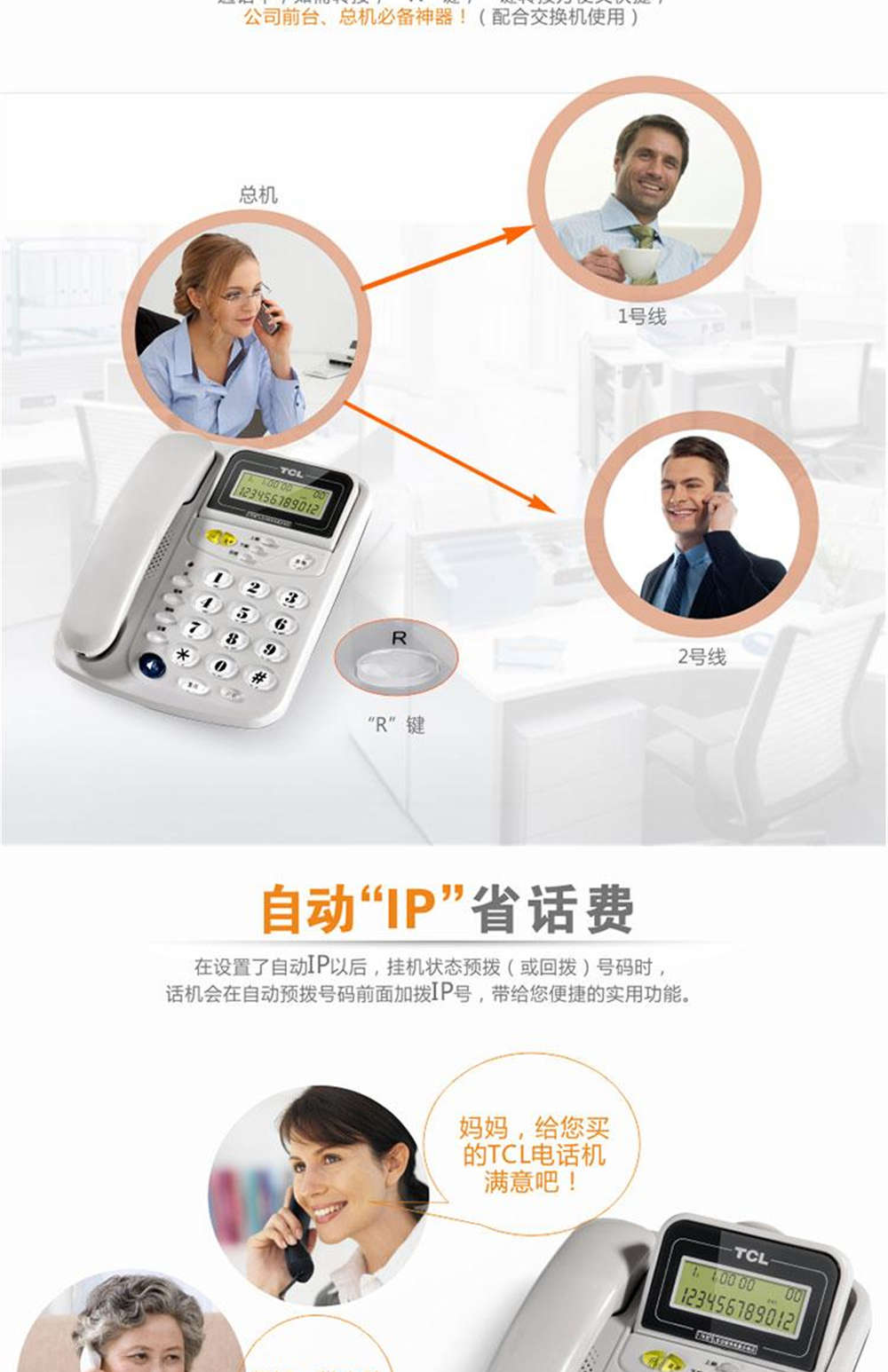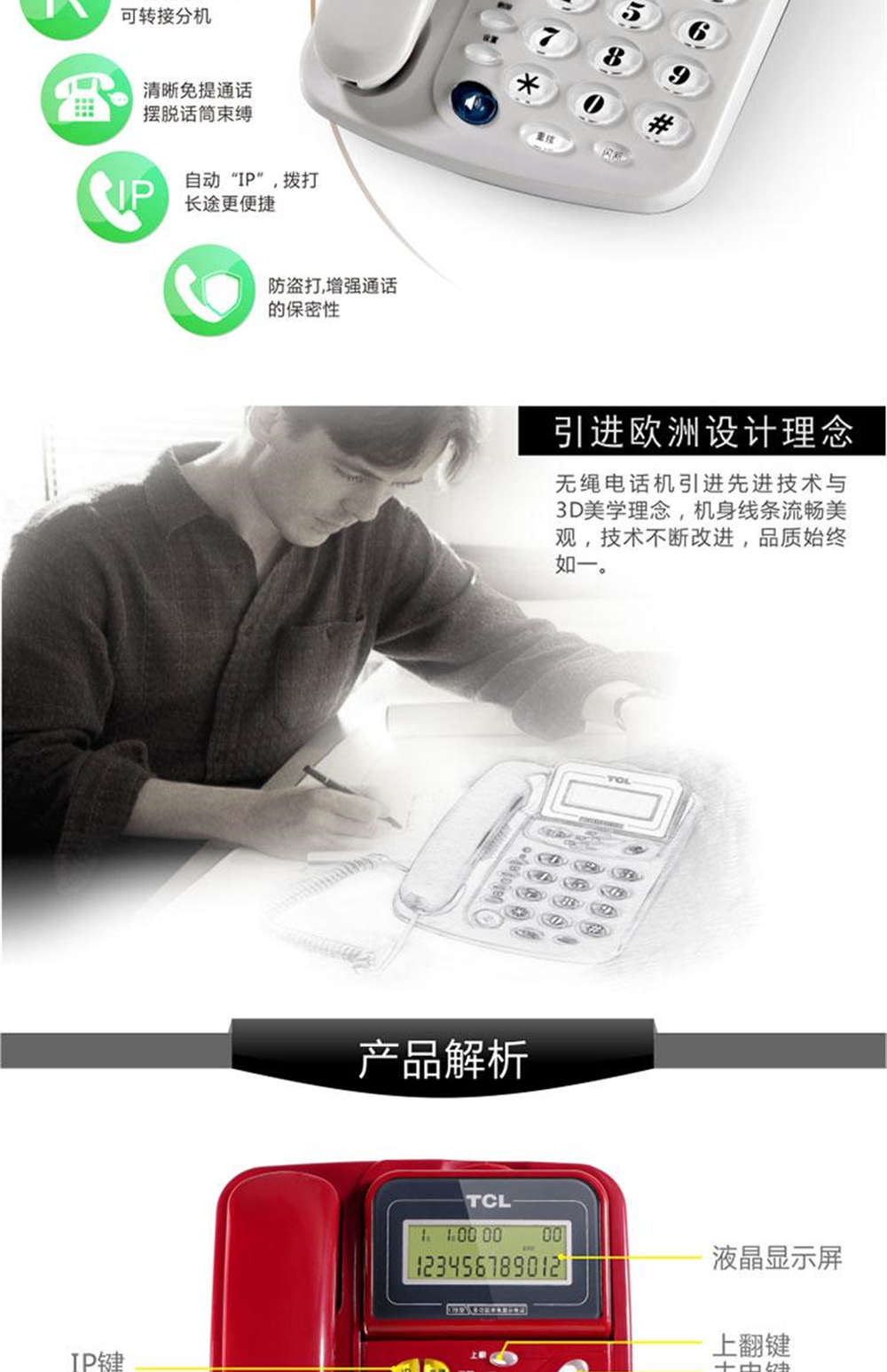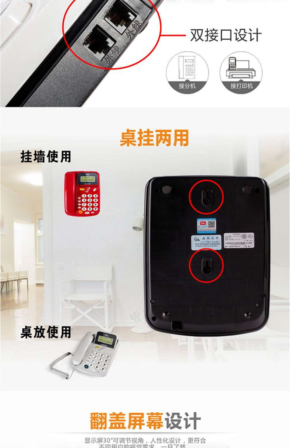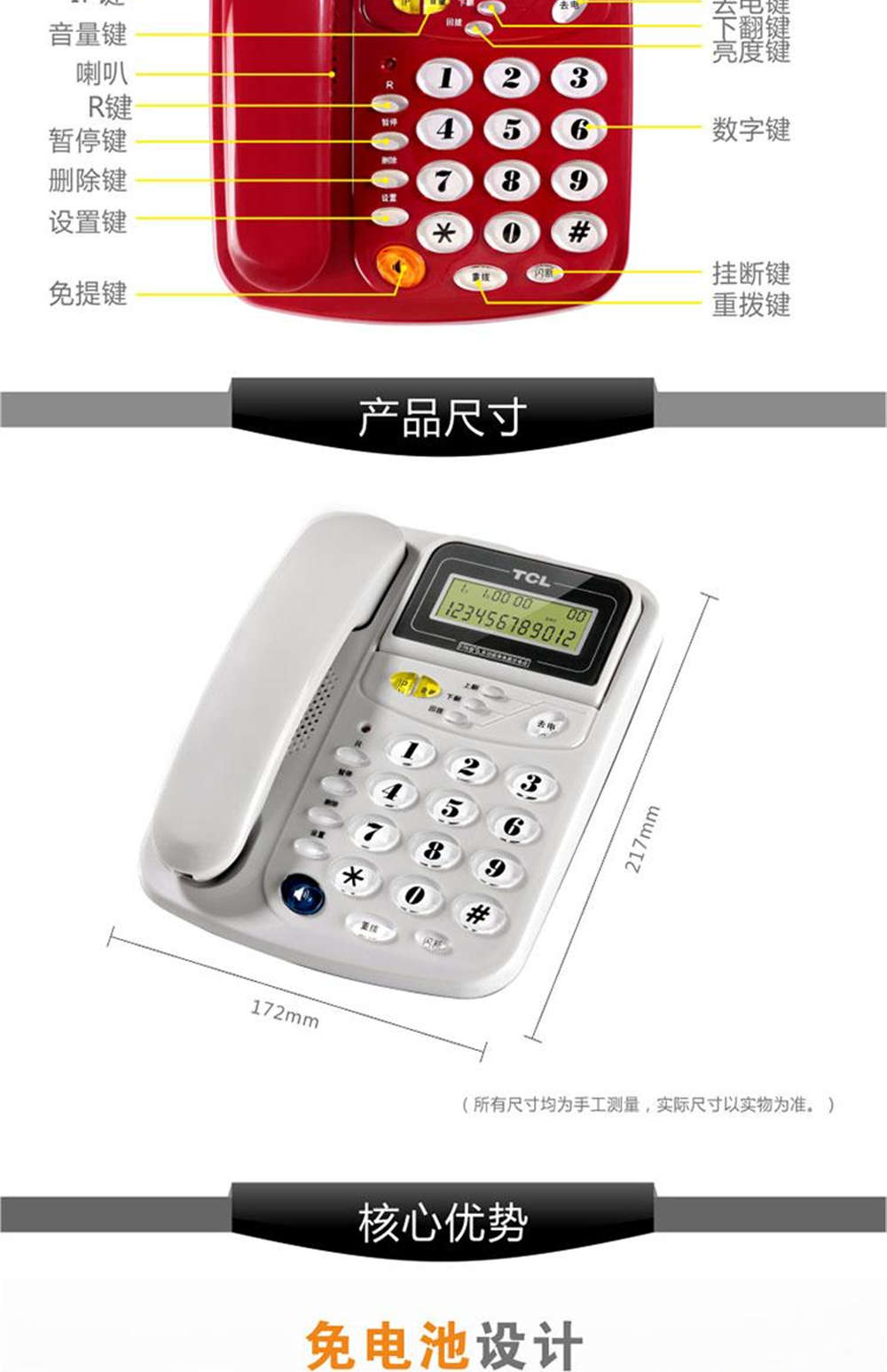商品名称:TCL 电话机来电显示双接口免提通话 HCD868(201)TSD