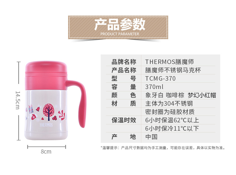 商品名称:膳魔师 真空不锈钢咖啡杯TCMG-370 象牙白/咖啡棕