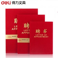 得力 7597聘书 6K绒面聘书 绒面聘书 红色聘书 烫金聘书