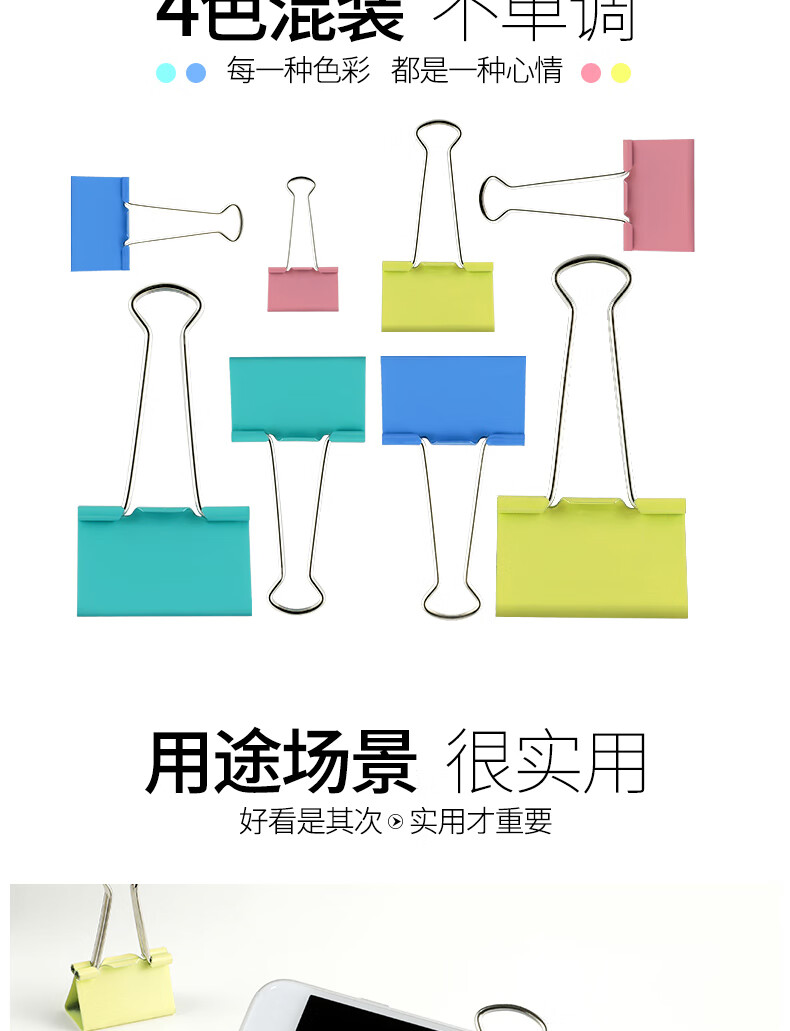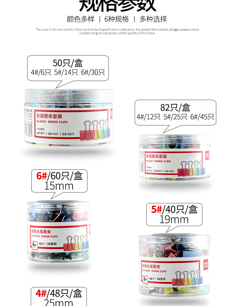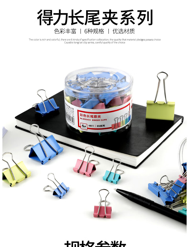 商品名称:得力 彩色长鱼尾夹 8554ES文件夹筒装