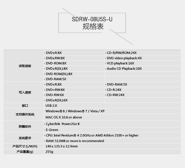 型号:SDRW-08U5S-U