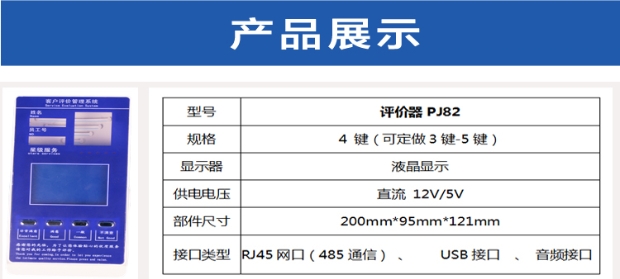 商品名称:中意恒信 评价器 客户满意度 电子液晶评价系统 PJ82