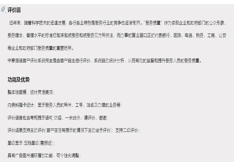 商品名称:中意恒信 评价器客户满意度 服务窗口液晶评价 PJ81