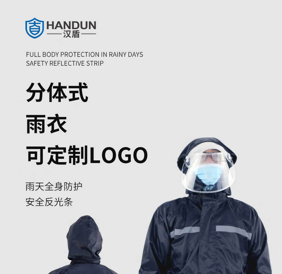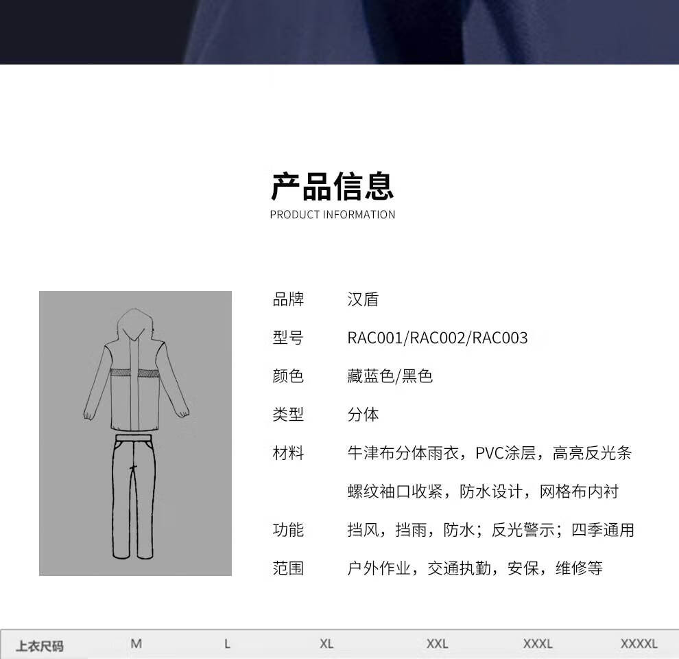 商品名称:汉盾 HD-RAC003 带反光条双层分体雨衣(带网格内衬、可拆卸大帽檐) 黑色 M码-XXXXL码
