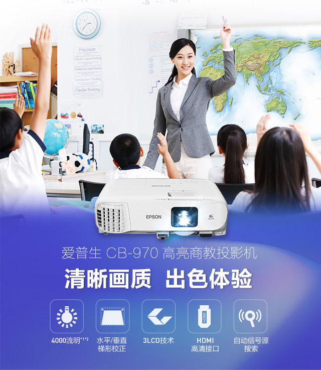 商品名称:爱普生/Epson 办公 投影机 投影仪(4000流明 双HDMI高清接口)CB-970