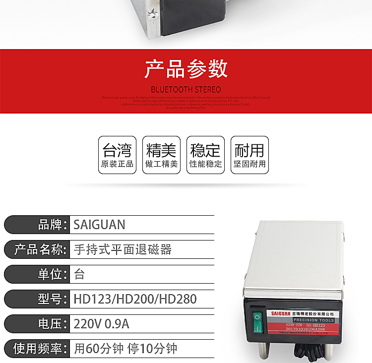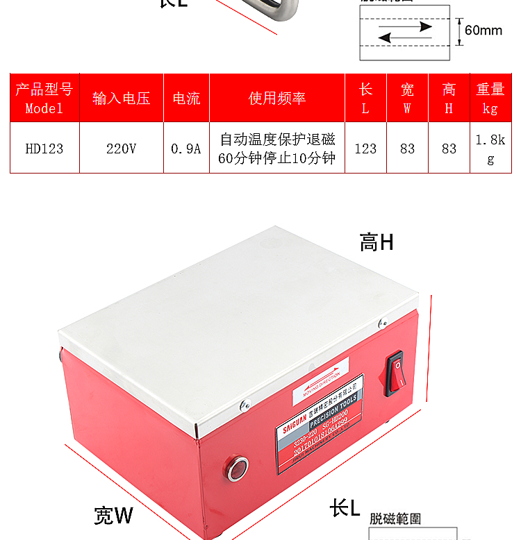 商品名称:赛冠 手持式平面退磁器金属模具强力型消磁脱磁器携带式 HD123