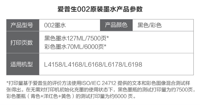 商品名称:爱普生/Epson 墨仓式打印机原装四色墨水 适用L4158/4168/6168/6178等