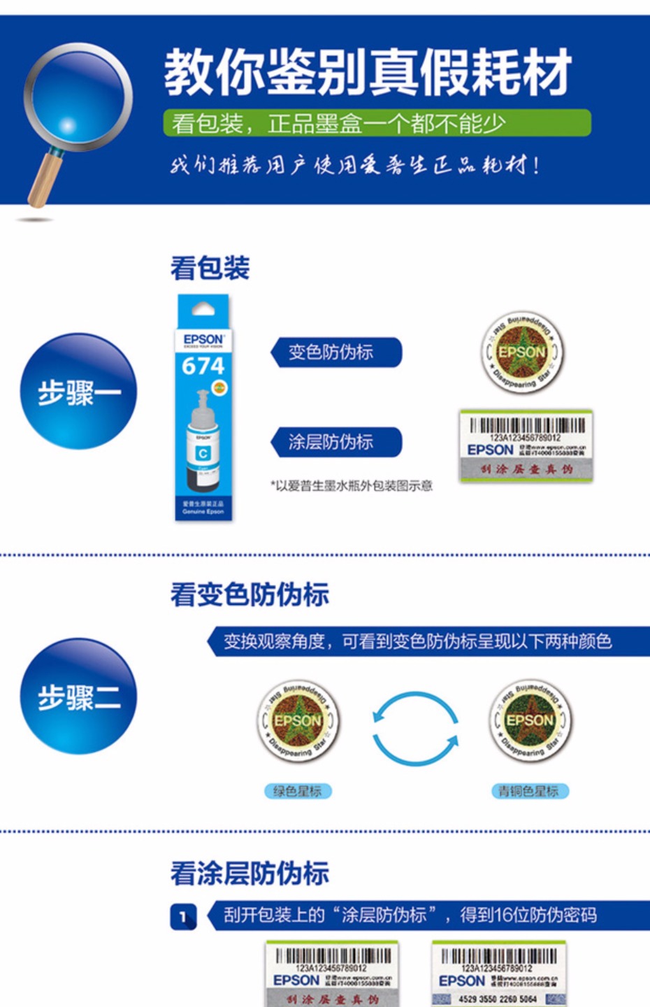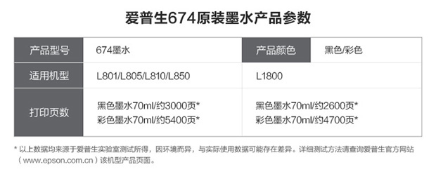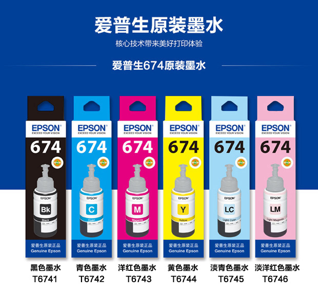 商品名称:爱普生/Epson 墨仓式打印机原装六色染料墨水 适用L810/850/1800等