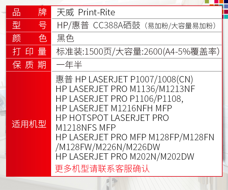商品名称:天威 硒鼓 cc388A 打印机HP88a易加粉M126A CC388A P1106 P1007 P1108 m226dw p1008墨盒M1213nf