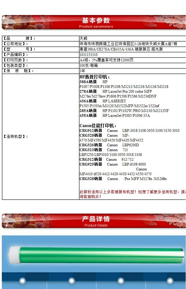 商品名称:天威 388A 感光鼓 鼓芯