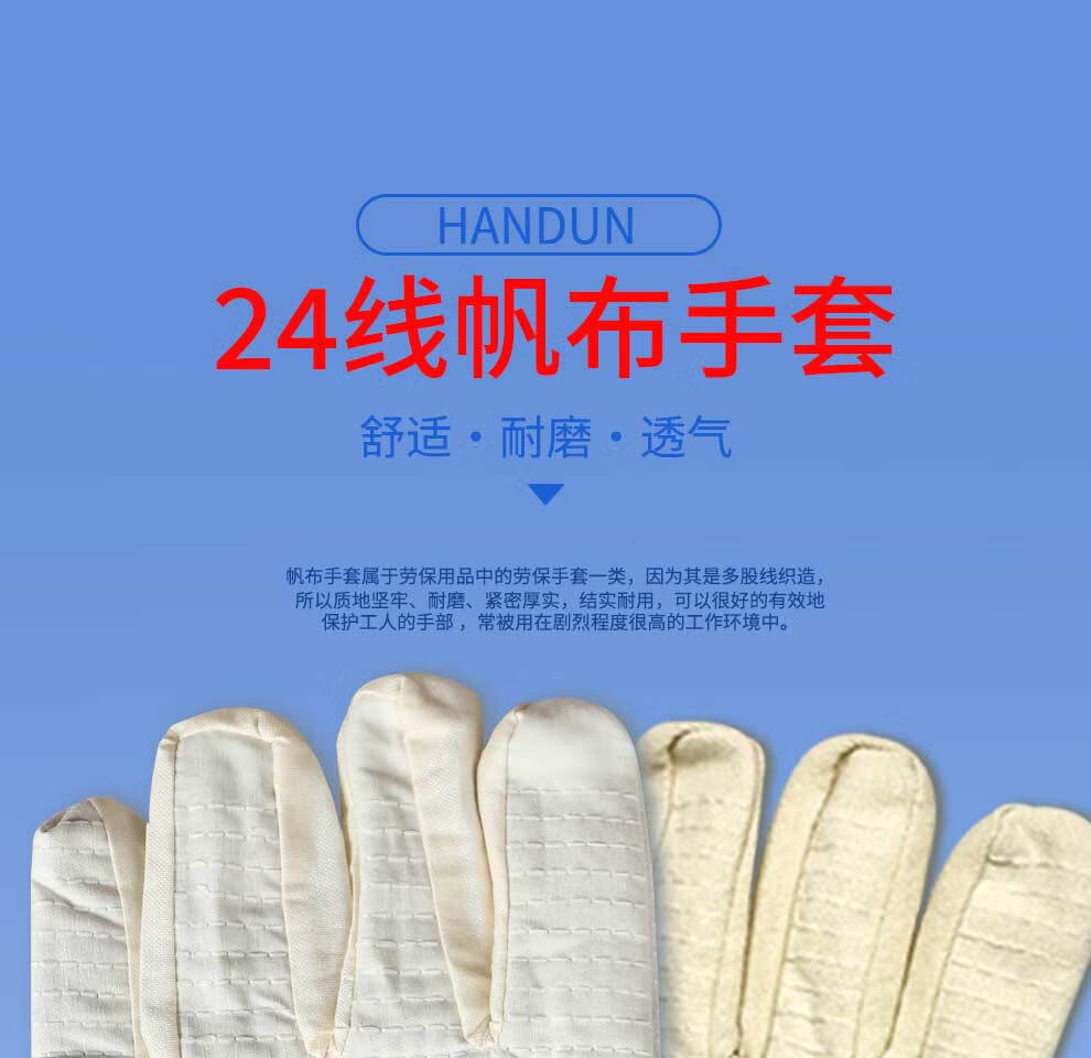 商品名称:汉盾 HD-G09 加厚双层帆布手套(白甲 24线)单位:双