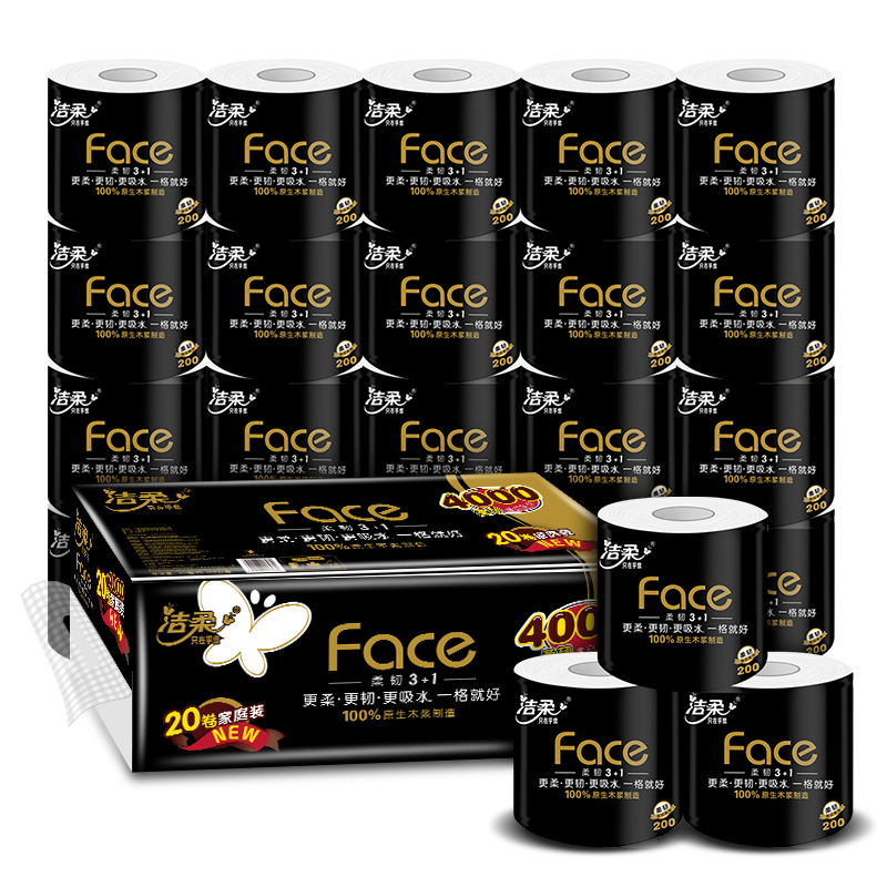 商品名称:洁柔 有芯卷纸 黑Face4层200克*20卷 单位:包