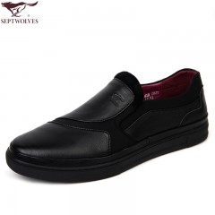 七匹狼 男鞋头层牛皮男士日常休闲舒适套脚真皮黑色皮鞋子