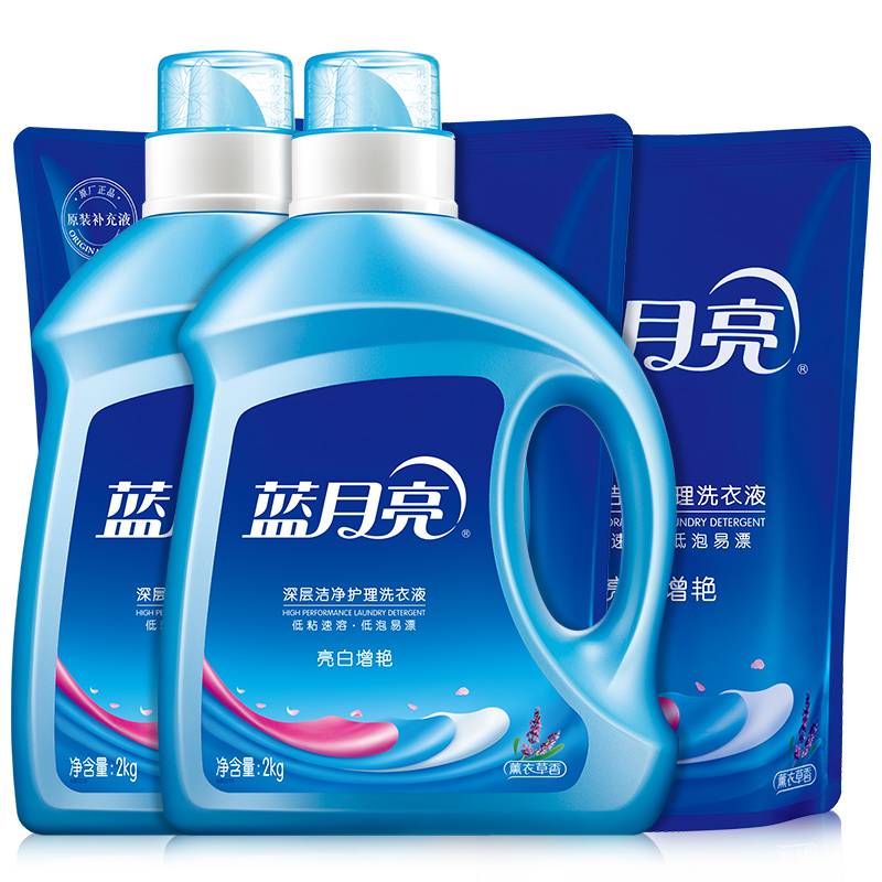 商品名称:蓝月亮 14斤洗衣液套装 机洗瓶装2kg*2+袋装1kg*3 亮白 增艳 单位:套