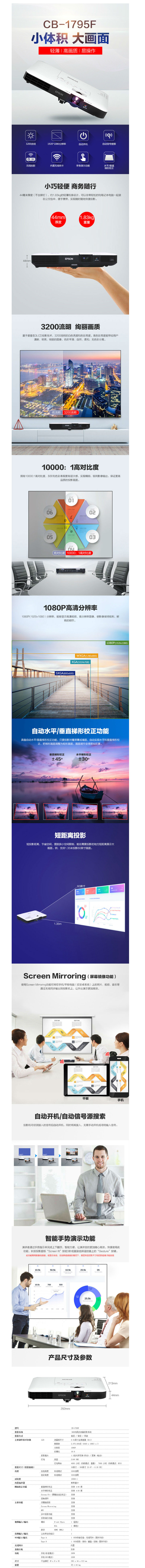 商品名称:爱普生(EPSON)-CB-1795F 投影仪-(轻薄便携 1080P全高清 无线投影 屏幕镜像)-单位:台