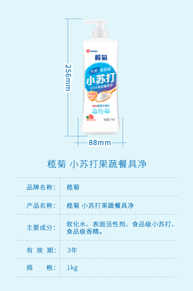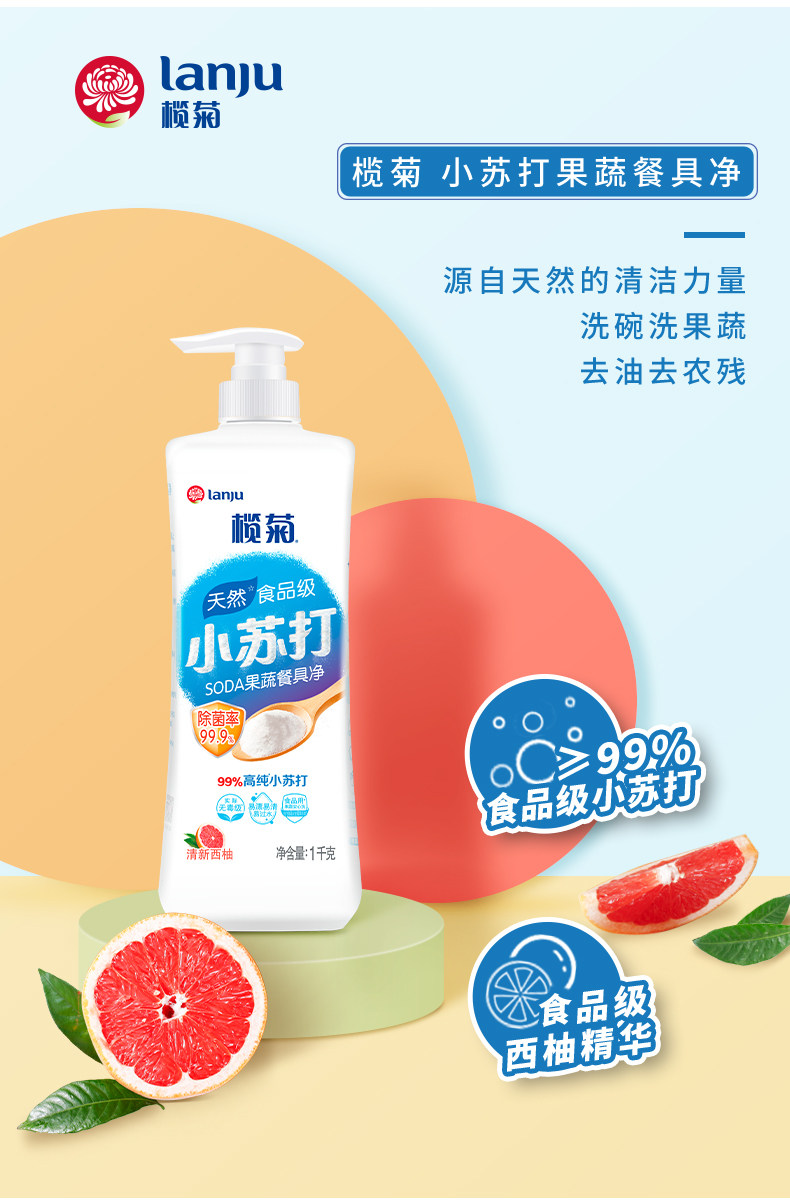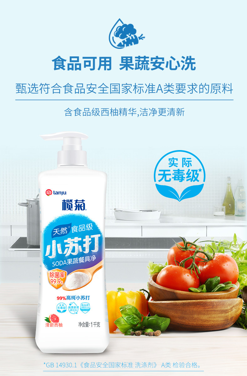 商品名称:榄菊-小苏打果蔬餐具净(除菌清新西柚)-1kg×2-单位:套