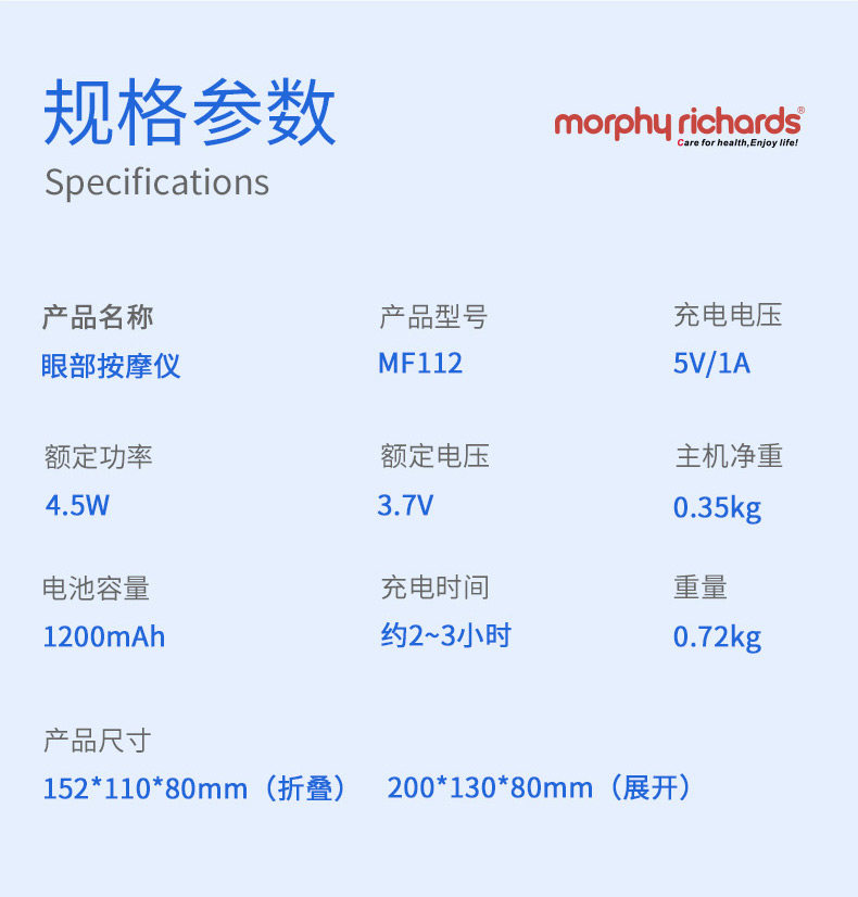 商品名称:摩飞-MF112-眼部按摩仪- 1200mAh-蓝色 -单位:个