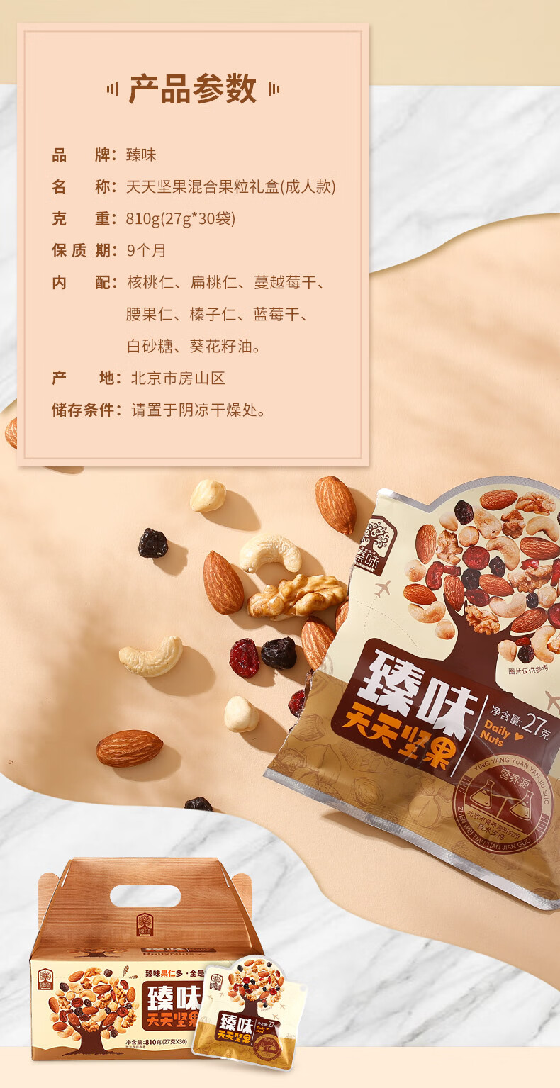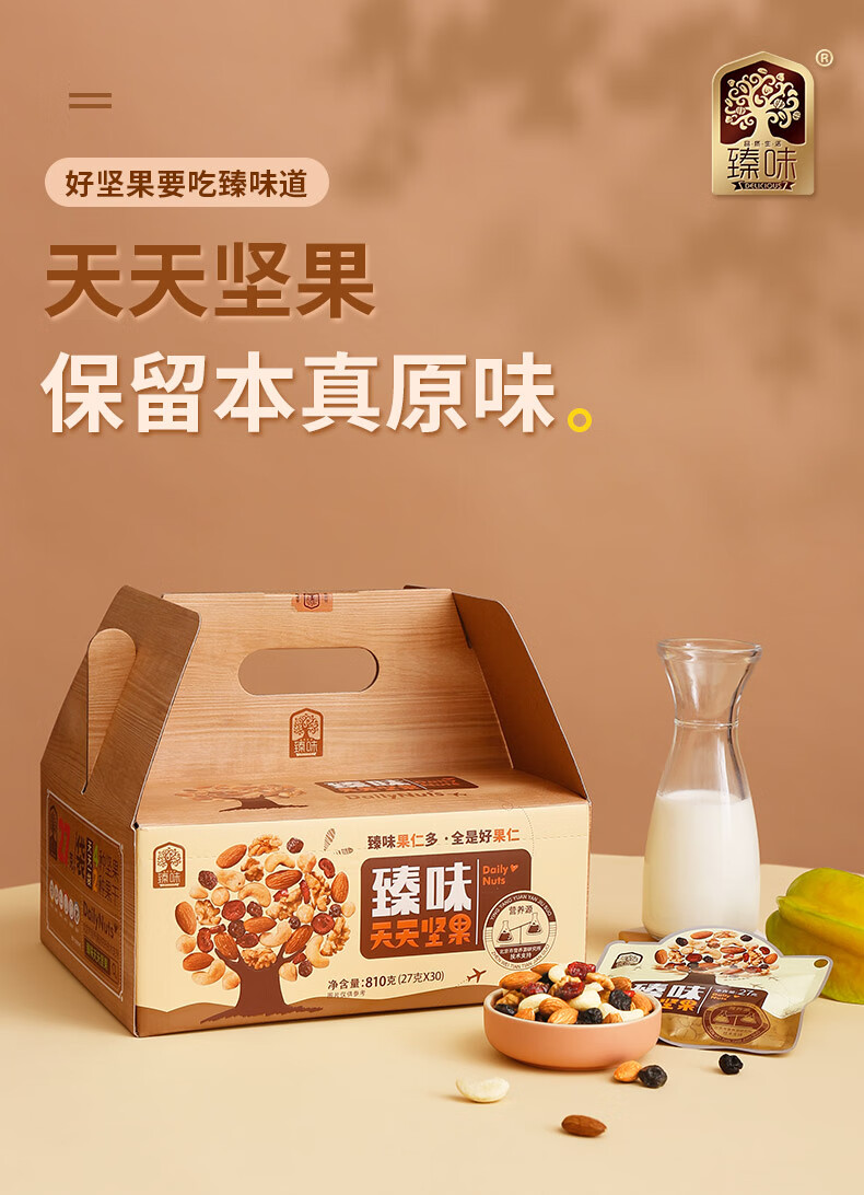 商品名称:臻味 810g天天坚果(A款)27g*30包 单位:盒