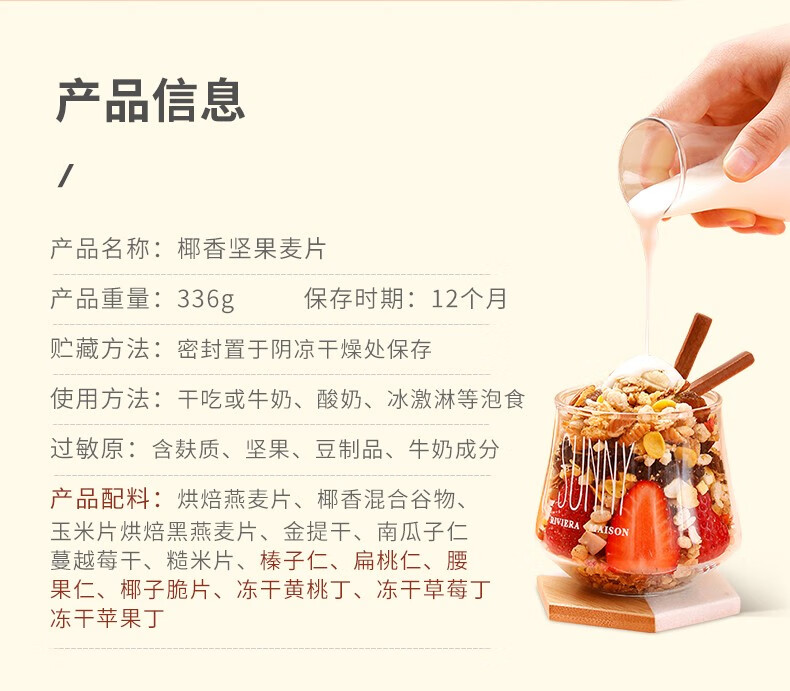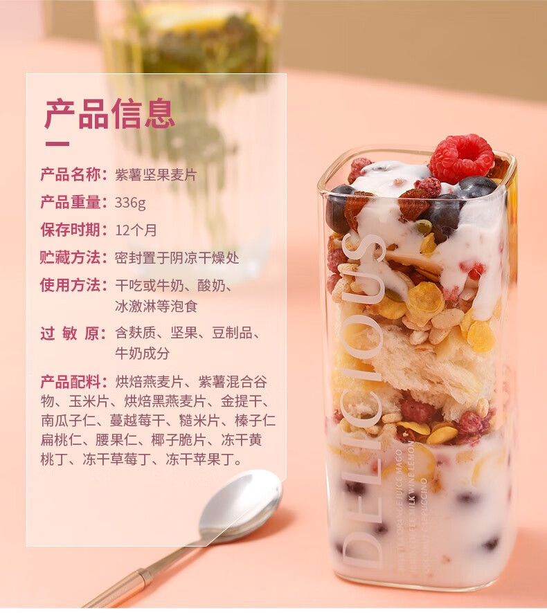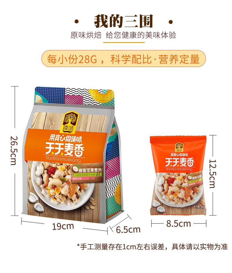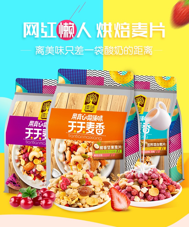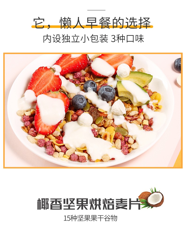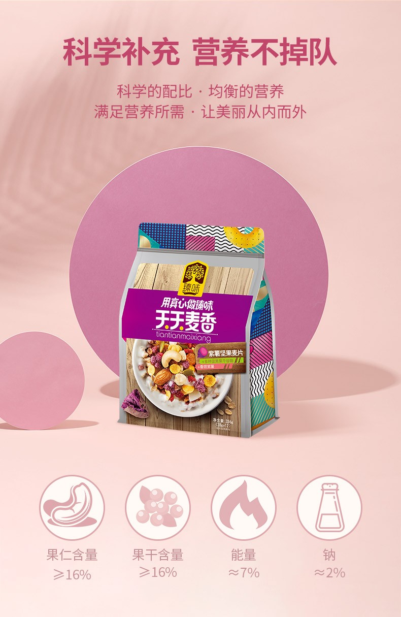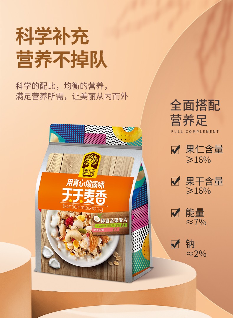 商品名称:臻味 336g天天麦香椰香坚果麦片(袋装)