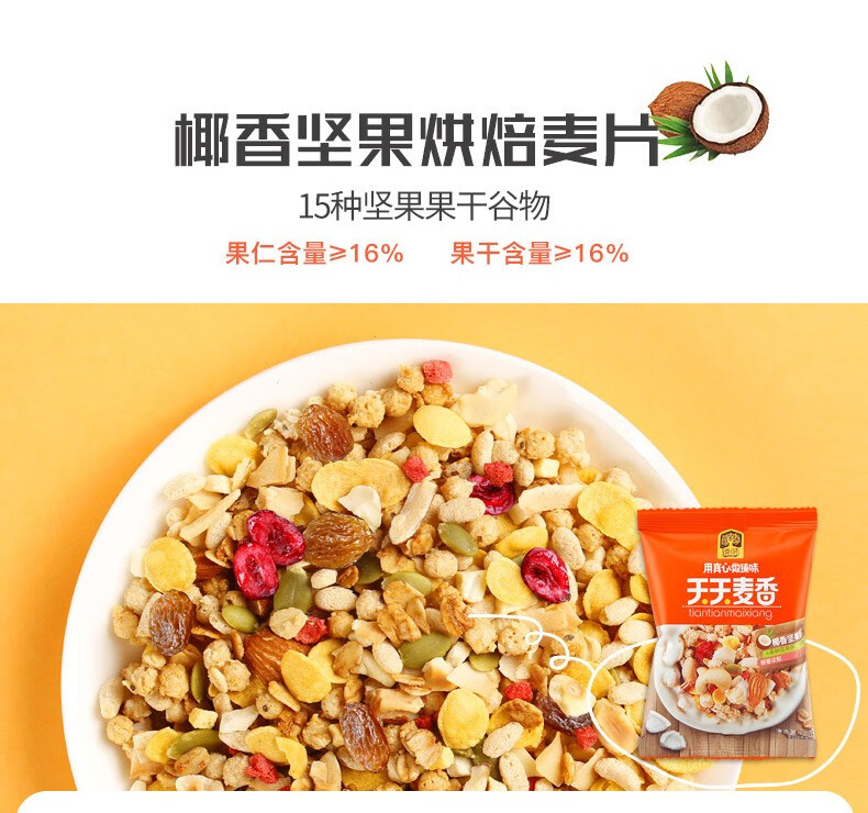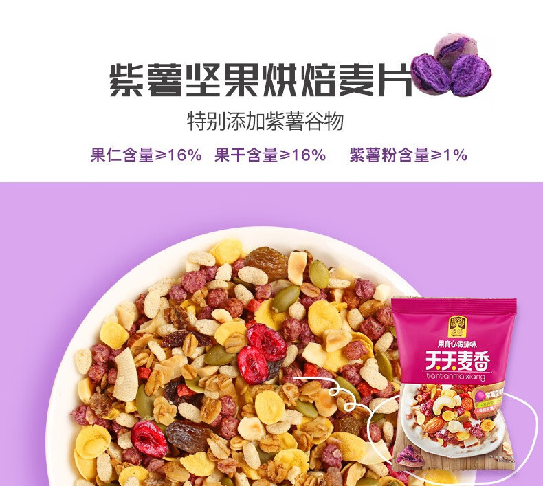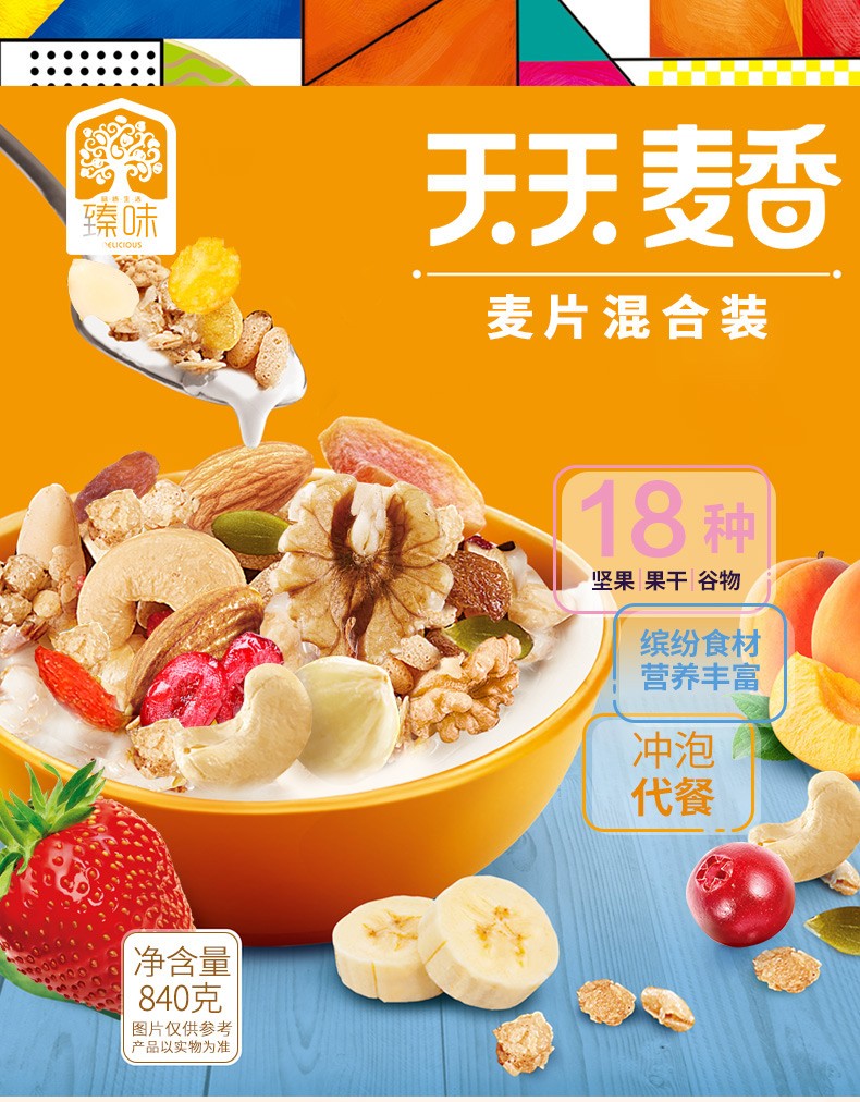 商品名称:臻味 天天麦香水果坚果麦片 混合坚果果蔬谷物麦片42g*30包