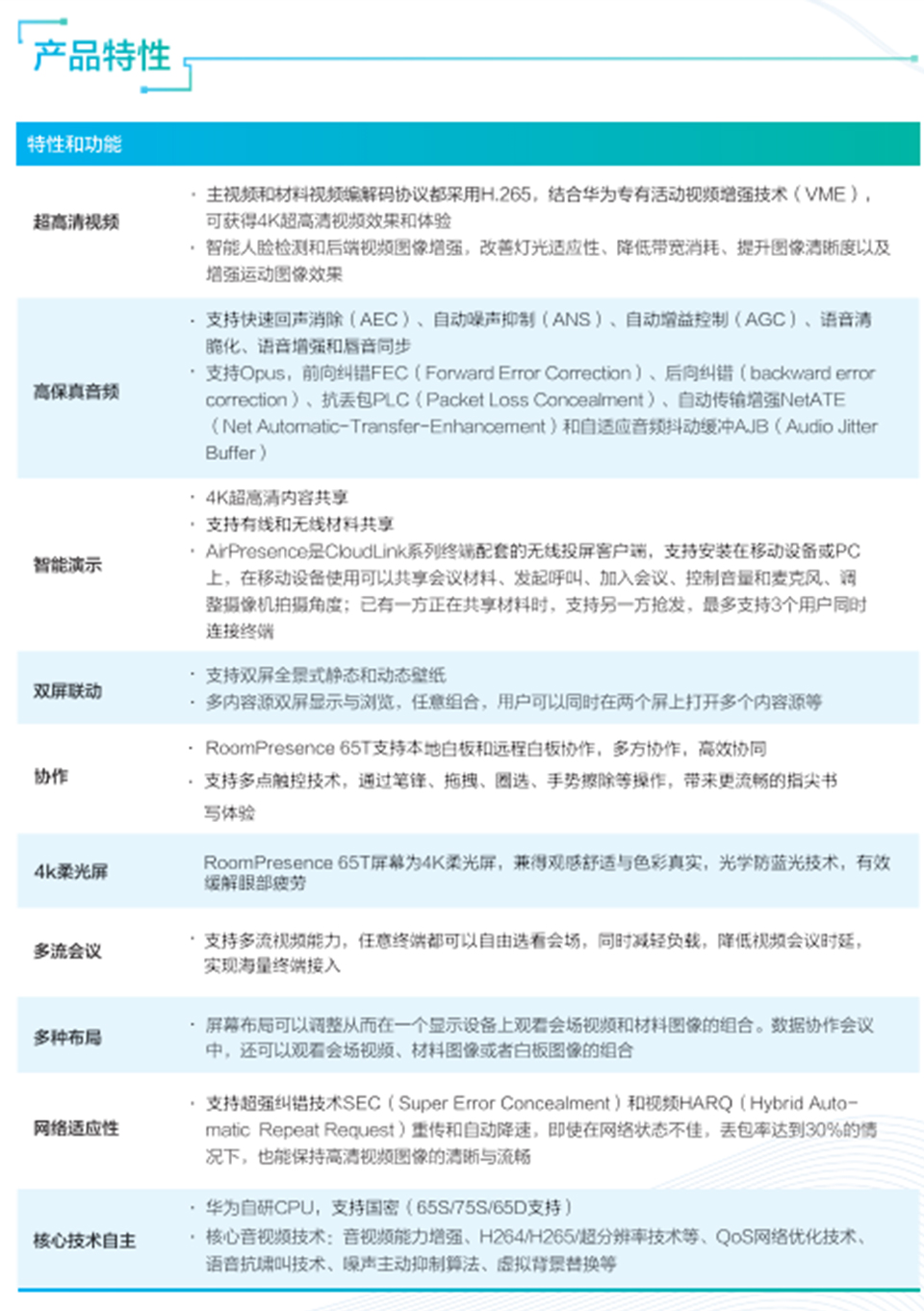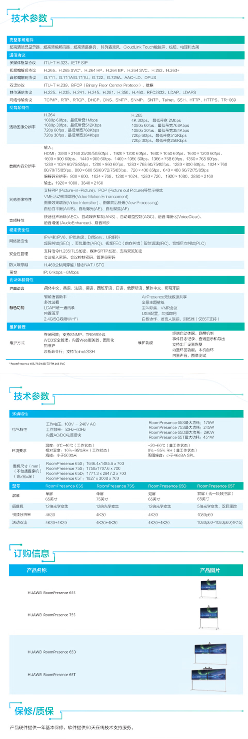 商品名称:华为(HUAWEI)RoomPresence 65T 多功能智真解决方案-65英寸双屏
