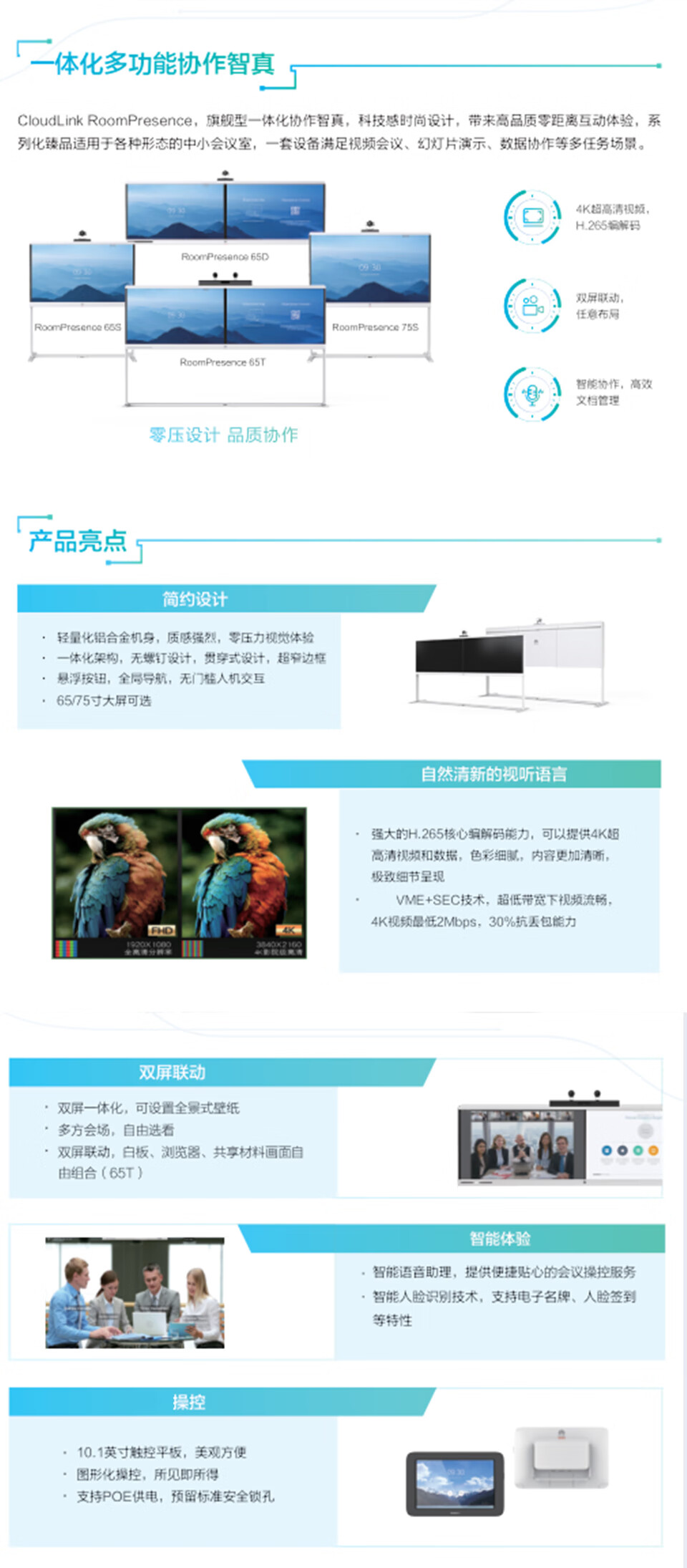 华为(HUAWEI)RoomPresence 65T 多功能智真解决方案-65英寸双屏