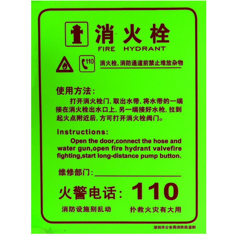 商品名称:虎鲸安(HJ)夜光消火栓消防栓使用方法贴纸说明安全警示牌夜光 10个起订