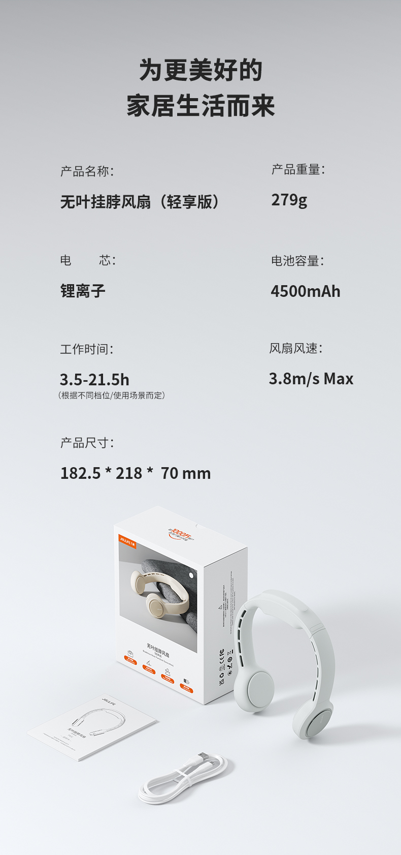 商品名称:几素-FA31无叶挂脖风扇-轻享版-单位:个