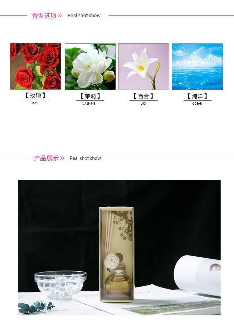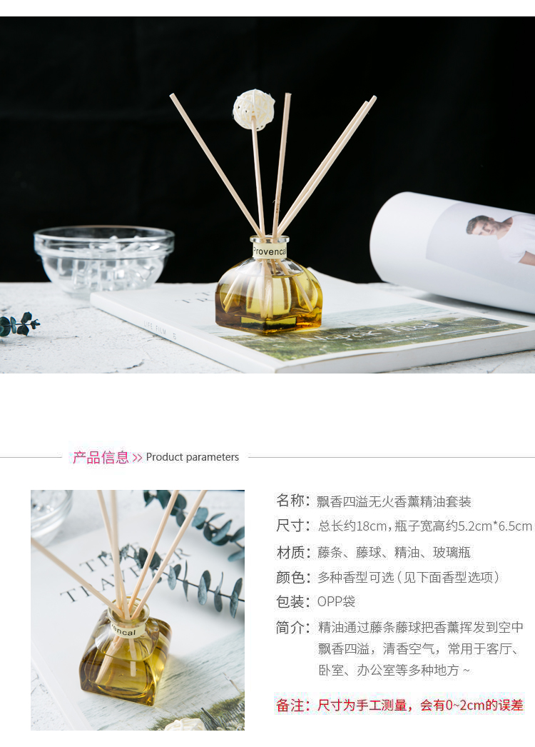 商品名称:国产 无火香薰精油藤条熏香家用卧室内房间香水厕所净化空气香薰瓶干花