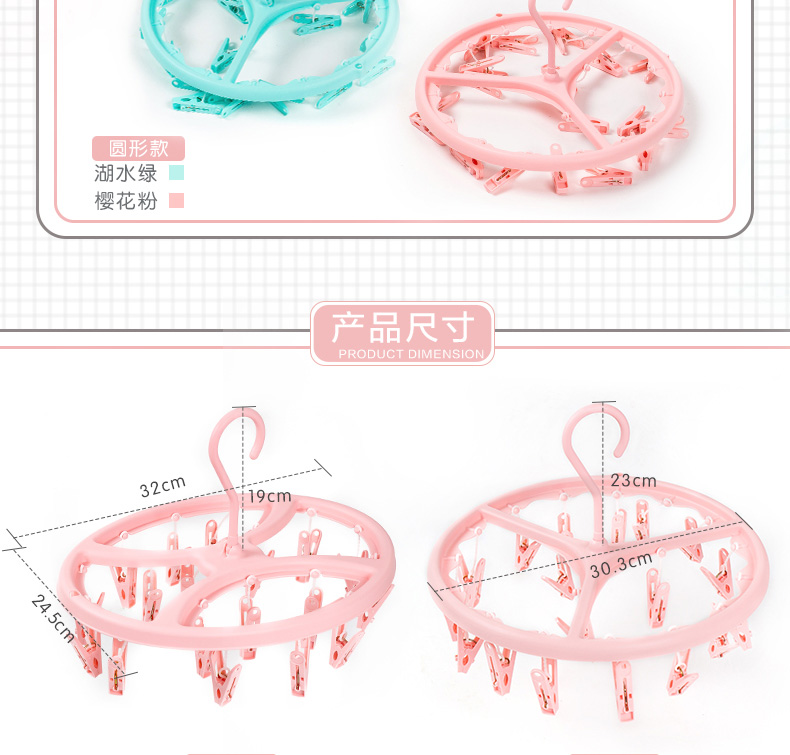 商品名称:茶花 晾袜子衣架多夹子圆盘家用内衣宝宝晒衣挂晾衣夹