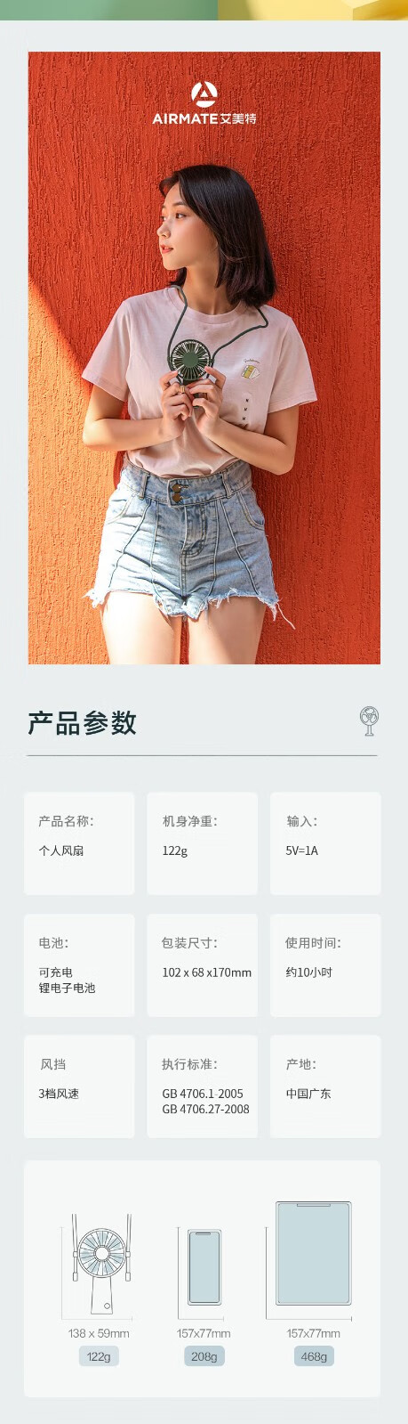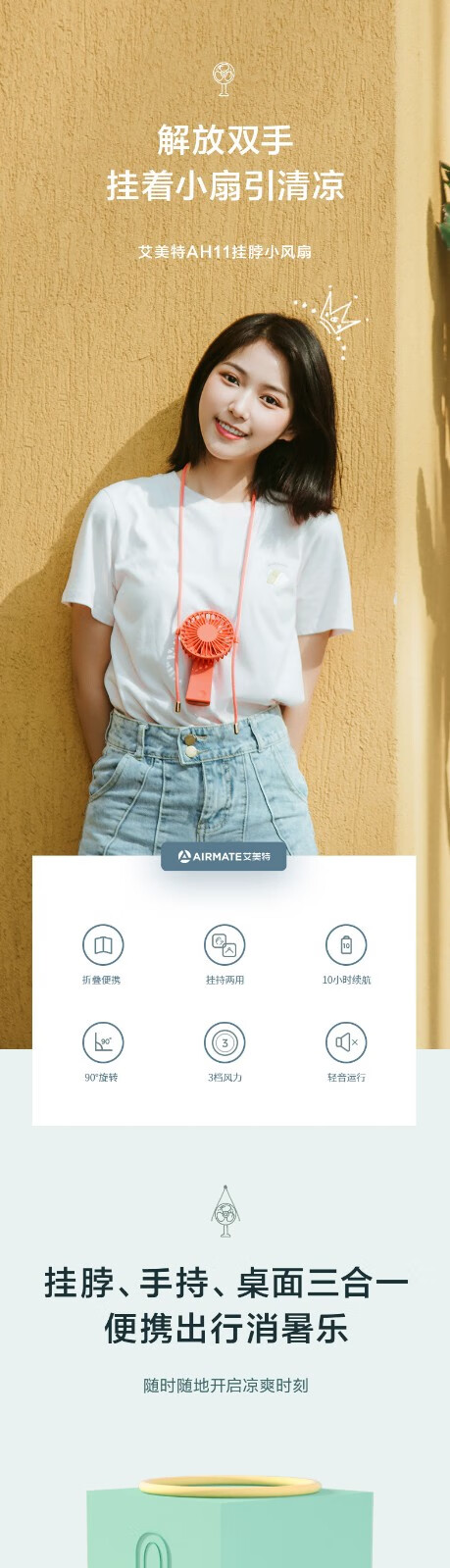 商品名称:艾美特 手持挂脖风扇AH11/AH16 AH16