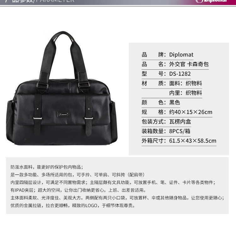 商品名称:Diplomat 外交官卡森齐单肩背包DS-1282
