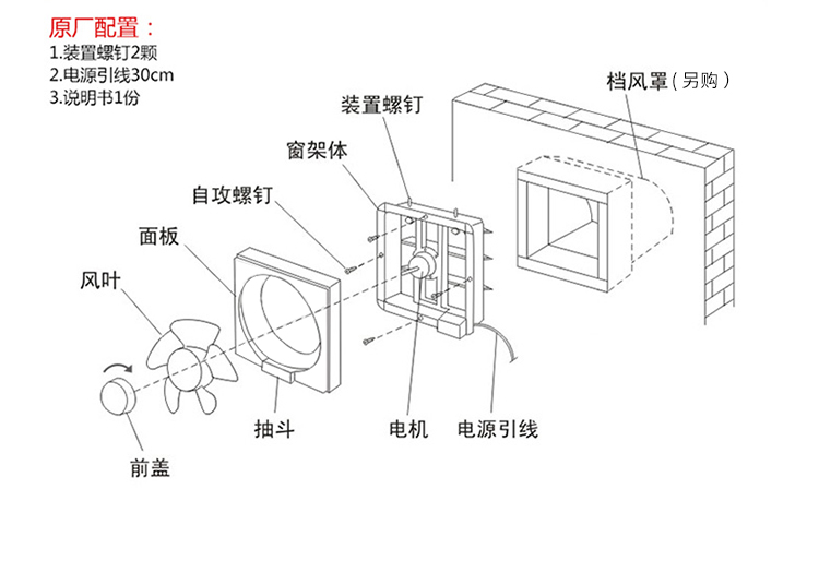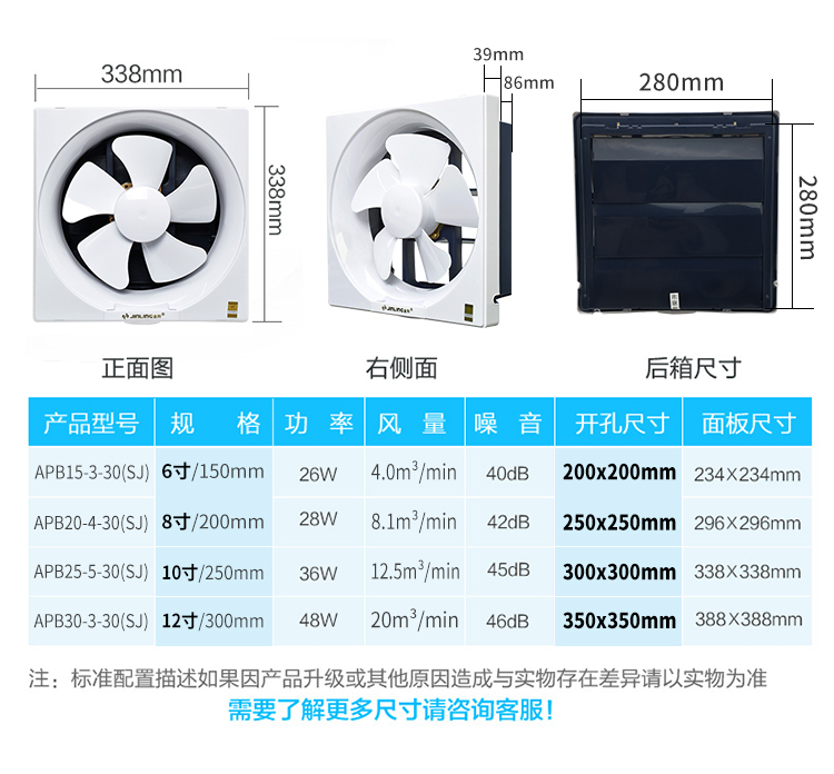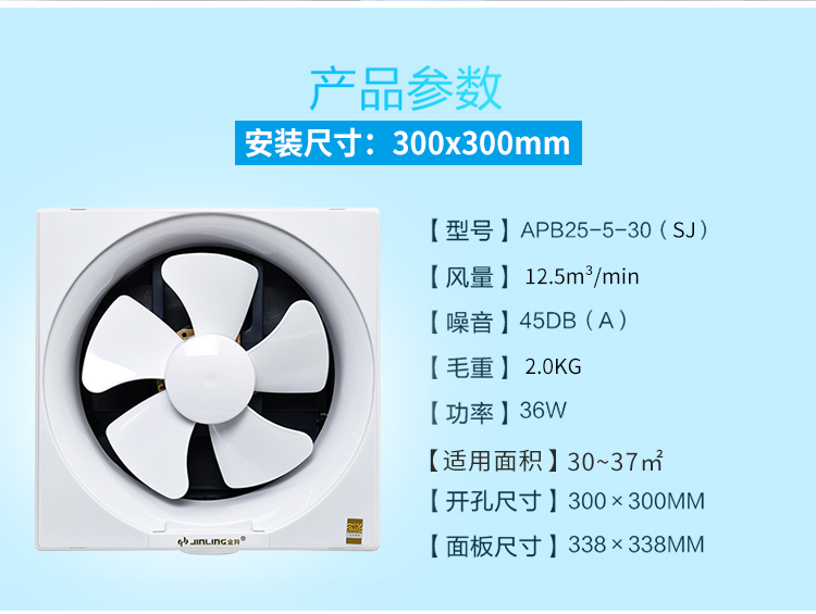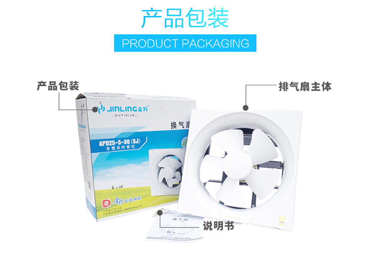 商品名称:金羚 换气扇卫生间抽风机厨房排气扇油烟窗式方形厕所排风扇 6寸【全塑框体】开孔尺寸:200X200mm 3个起订 单位:个