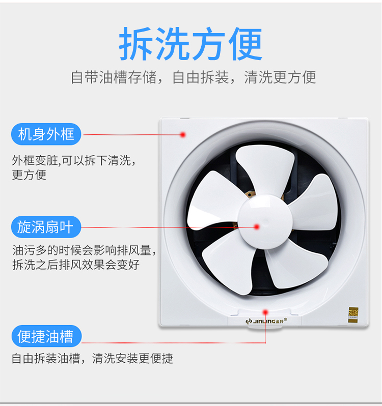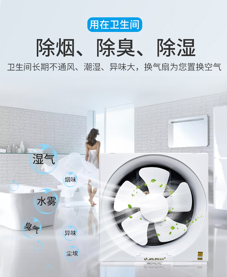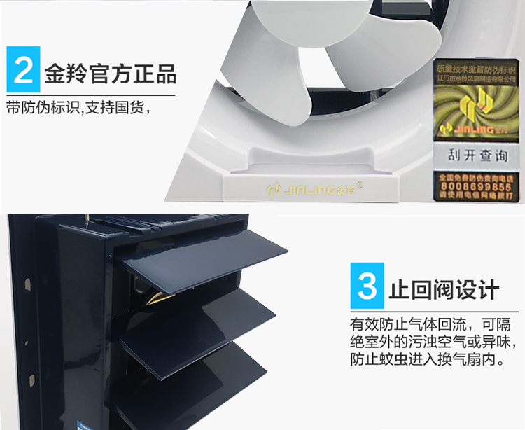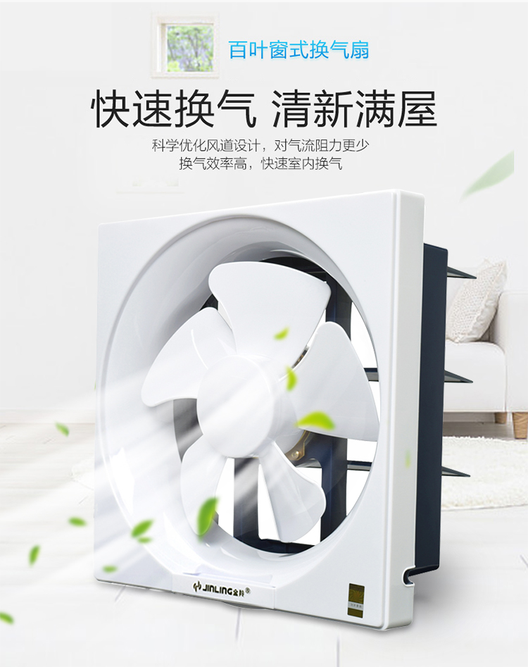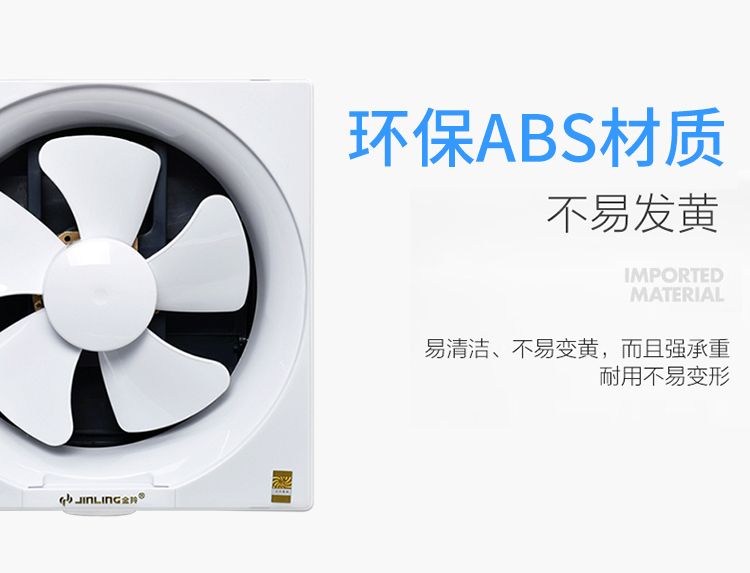 金羚 换气扇卫生间抽风机厨房排气扇油烟窗式方形厕所排风扇 6寸【全塑框体】开孔尺寸:200X200mm 3个起订 单位:个