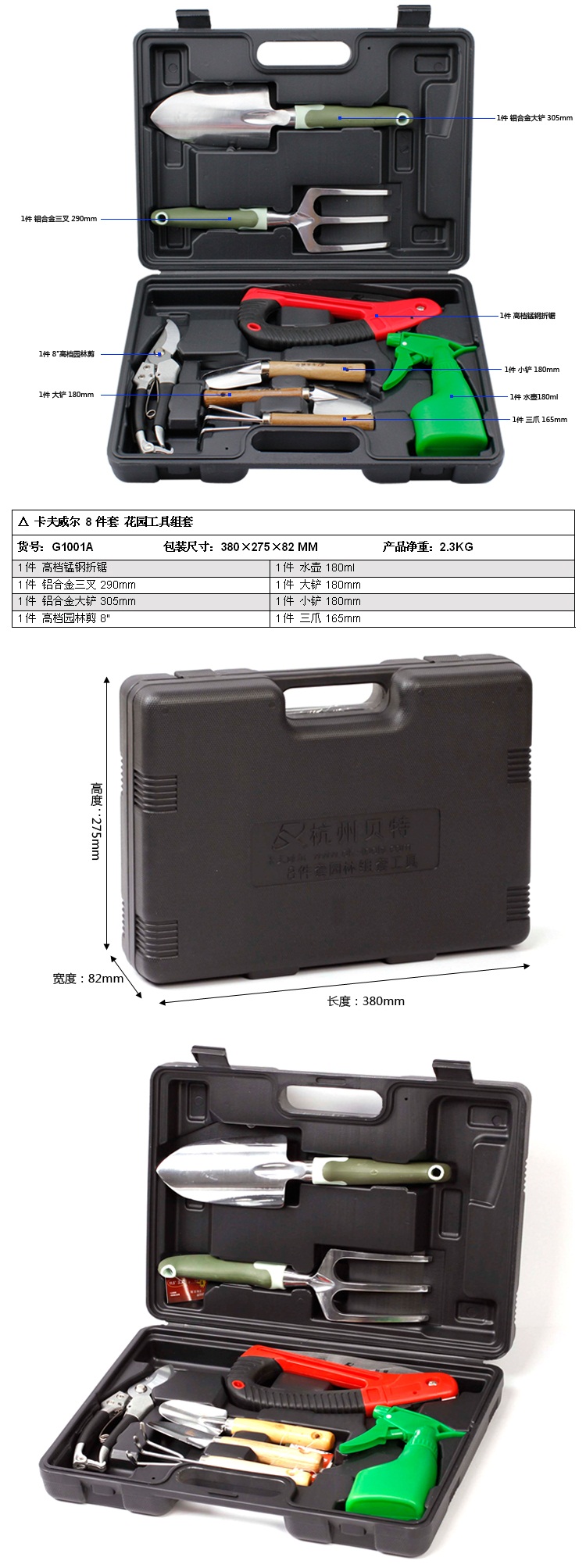 商品名称:卡夫威尔 工具箱 工具套装 园艺种植养花种菜工具8件套 G1001A