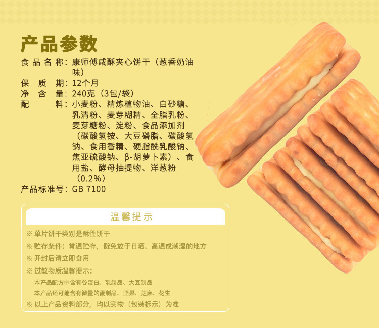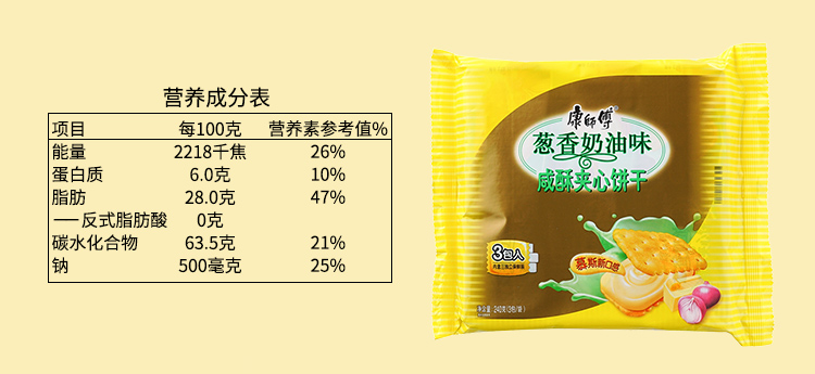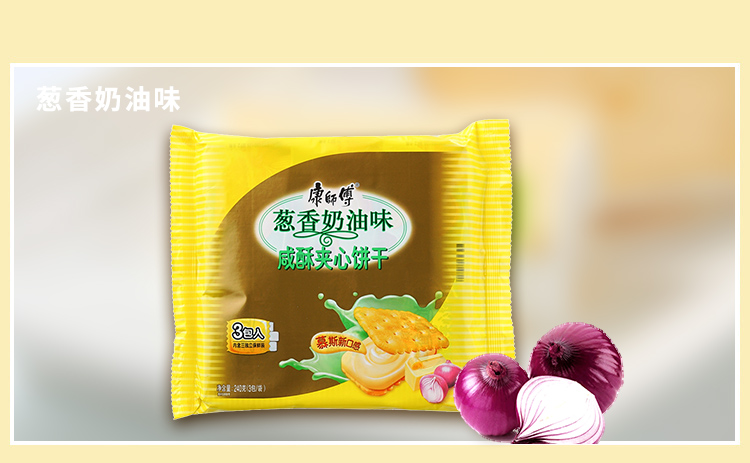 商品名称:康师傅 咸酥夹心饼干3包装 葱香奶油口味240g休闲零食小吃