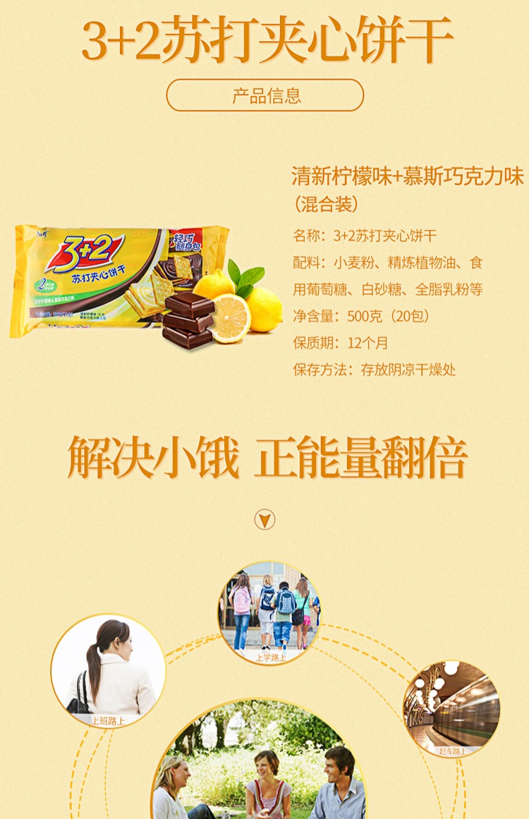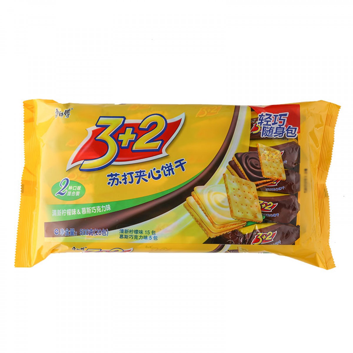 商品名称:康师傅 3+2苏打夹心饼干(柠檬&慕斯巧克力)500g