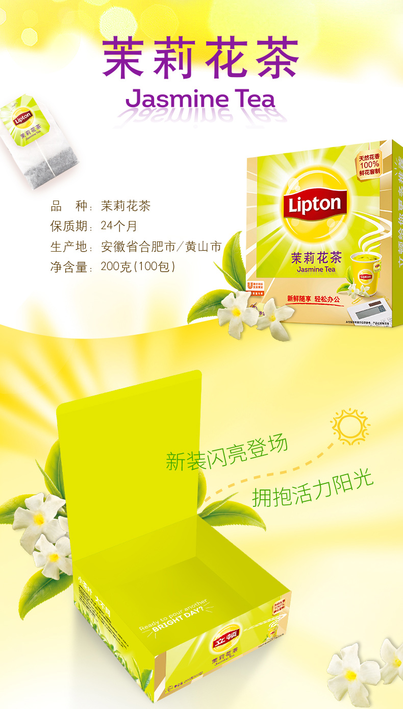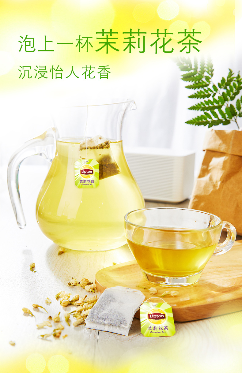 商品名称:Lipton/立顿 茉莉花草茶S100 一次性办公泡茶包立顿茉莉花茶100包x2g/盒