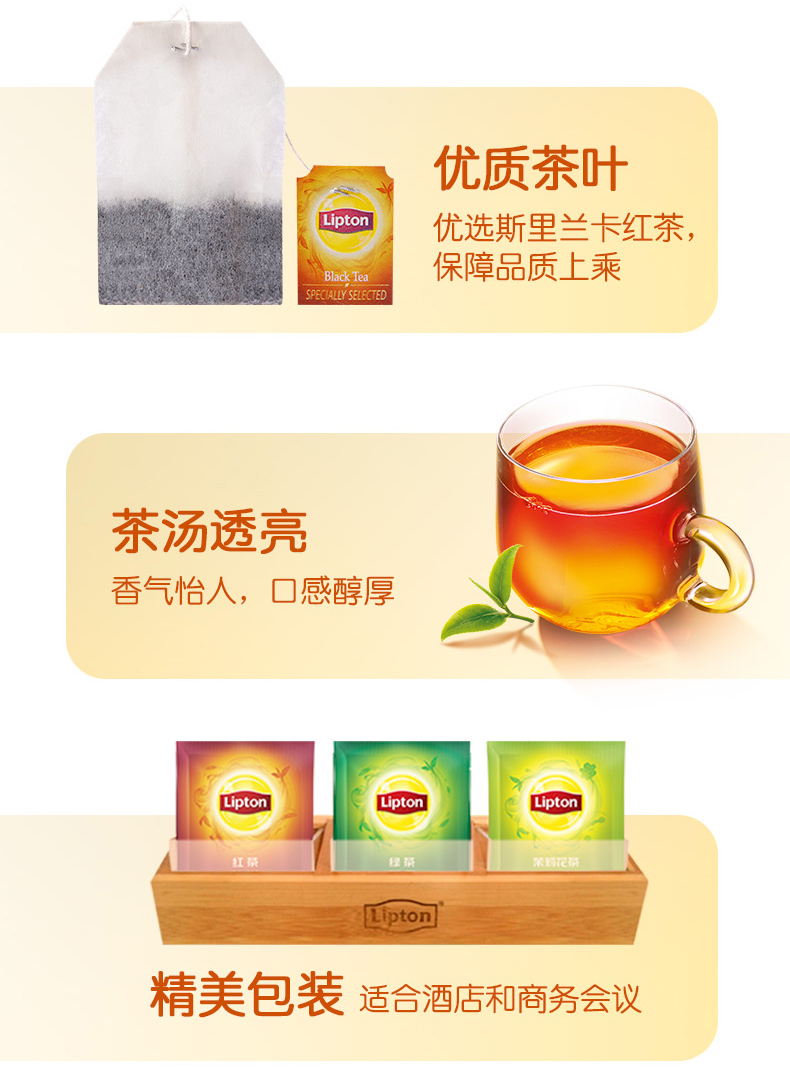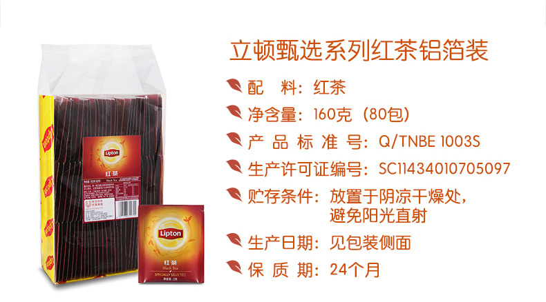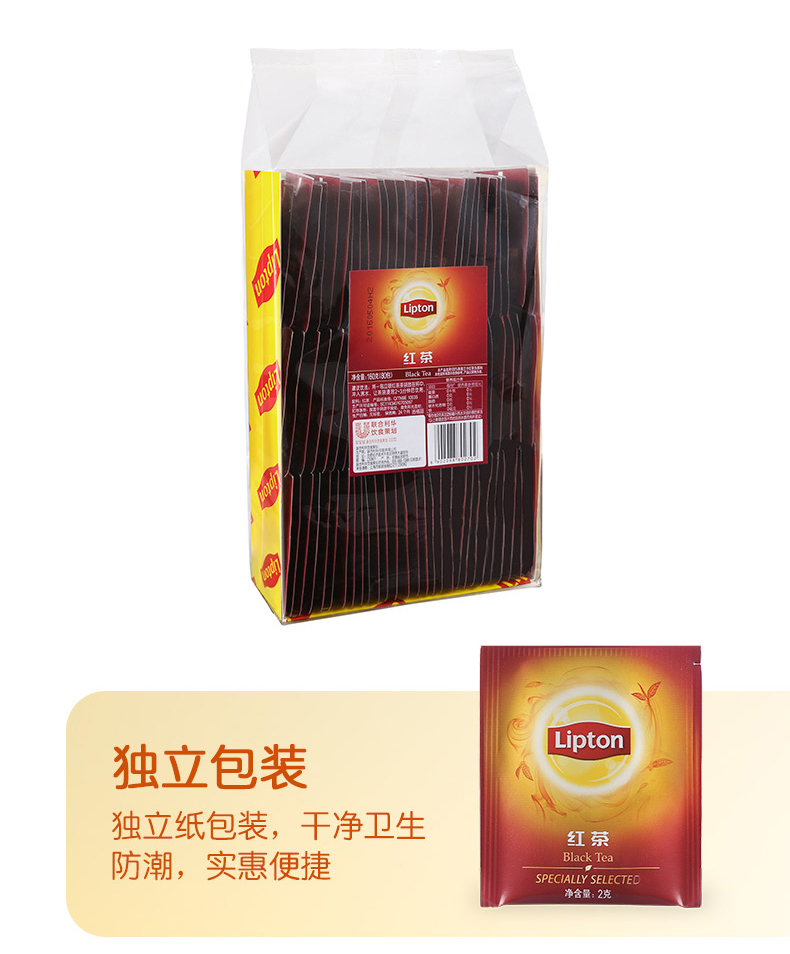 商品名称:Lipton/立顿 红茶一次性袋泡茶包 办公酒店客房独立包铝箔茶包80包*2g